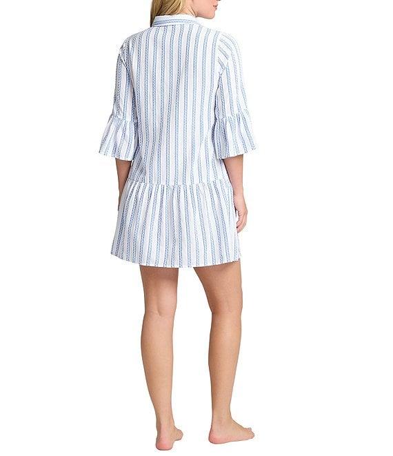 Tommy Bahama Bonita Stripe Print Point Collar Bell Sleeve Button Front Shirt Dress Swim Cover-Up