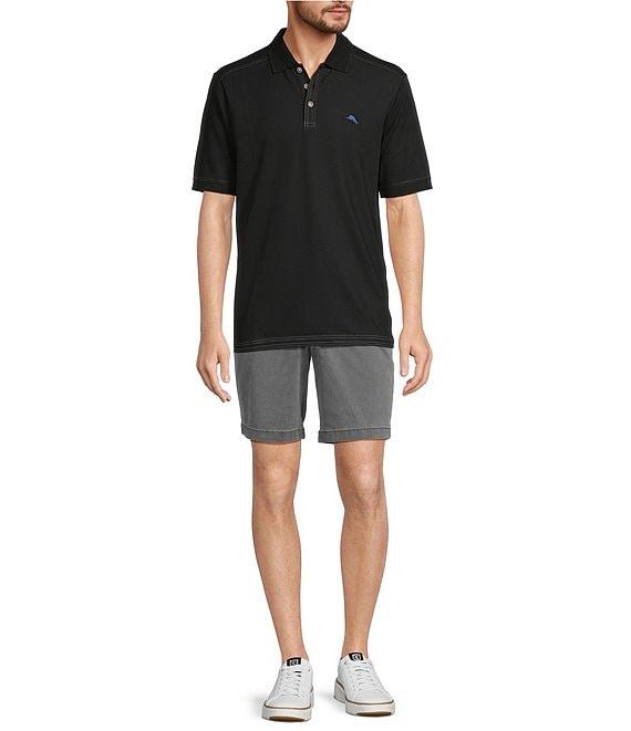 From Tommy Bahama, these shorts feature: Flat-front styling Belt loops Zip/button-front closure Quarter-top front pockets Single welt back pockets 9" inseam Pigment-dyed cotton/Tencel™ Lyocell stretch sateen Machine wash/tumble dry Imported.