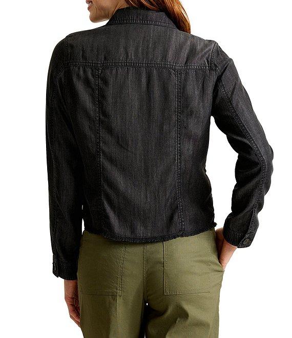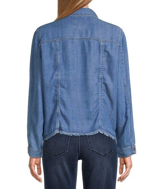 From Tommy Bahama, this jacket features: Chambray fabrication Point collar neckline Long sleeves Front pockets with button flaps Side pockets Raw edge Button front closure Approx. 22.5" length Tencel lyocell/linen Machine wash cold/tumble dry low Imported.
