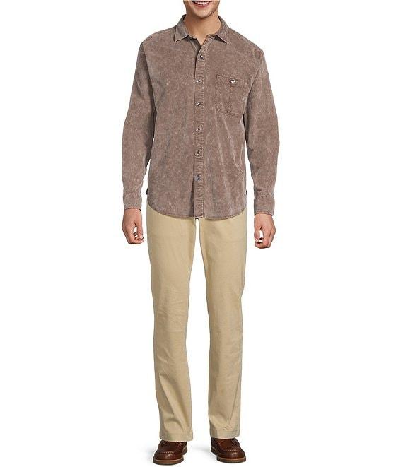 From Tommy Bahama, this shirt features: Point collar Long sleeves Button-front Button-through patch pocket Shirttail hem Cotton/spandex corduroy with acid wash Machine wash/tumble dry Imported.