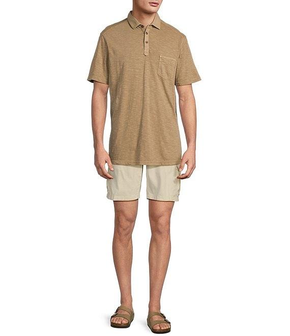 From Tommy Bahama, this polo shirt features: Solid pigment overdyed cotton slub jersey Polo collar Short sleeves Chest pocket 3-button placket Woven trims, rivet and accent thread bar tacks Pullover construction Organic cotton Machine wash/tumble dry low Imported.