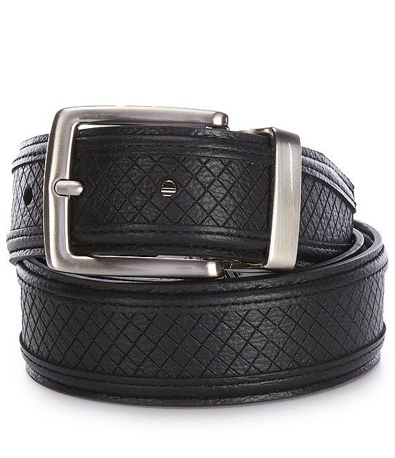 From Tommy Bahama, this belt features: Standard buckle with single keeper 4.0-4.4 mm thickness 45" length 0.5" height 1.5" width S = 30-32 M = 34-36 L = 38-34 XL = 42-44 2XL = 46-48 polyurethane/bonded filler/split filler Spot clean Imported. Suggested belt size: Take your existing pants size and add two inches. E.g. if your pants size is 32, purchase a size 34.