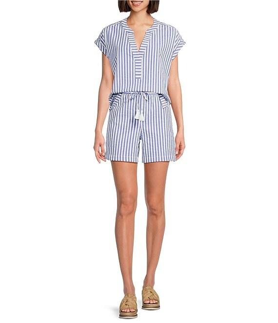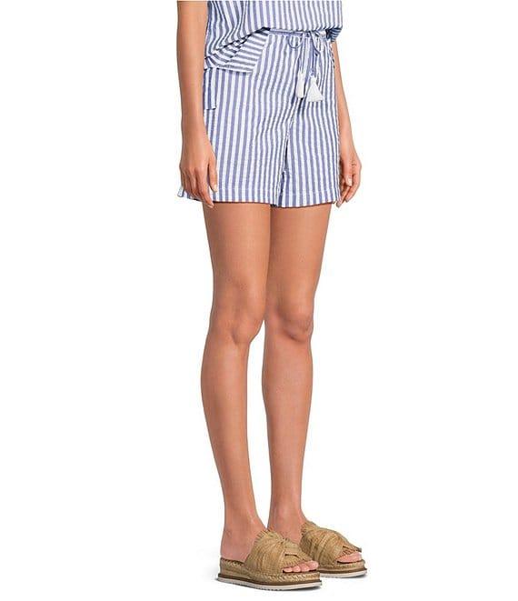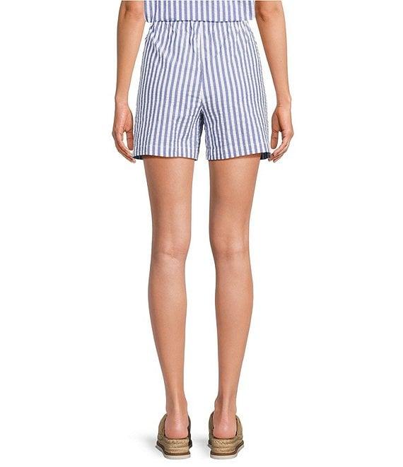 From Tommy Bahama, these shorts feature:Yarn dyed seersucker fabricationElastic waistband with front tasselTwo side functional pocketsPull-on drawstring constructionApprox. 5" inseamCotton/spandexMachine wash cold/line dry or dry cleanImported.