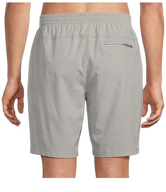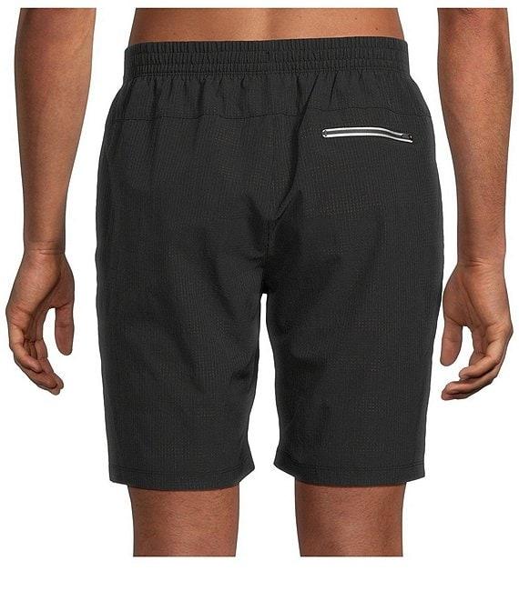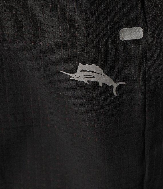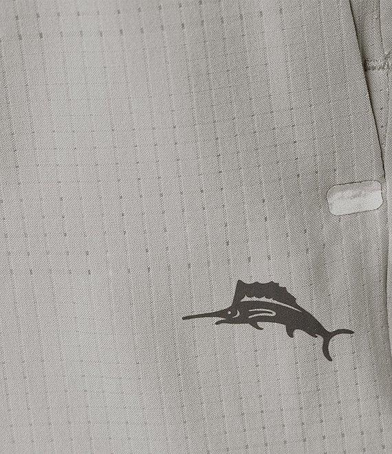 From Tommy Bahama, these swim trunks feature: Drawstring elastic waistband Quarter-top front pockets Zippered back pocket Performance boxer brief liner 8" inseam Pull-on construction Perforated recycled polyester/spandex Machine wash/tumble dry Imported.