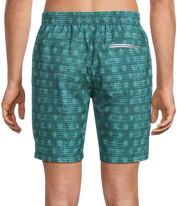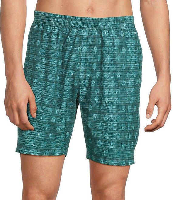 From Tommy Bahama, these swim trunks feature:Allover printDrawstring elastic waistband2 front pocketsZippered back pocketReflective detailsPerformance boxer brief linerPull-on constructionMoisture wicking fabric8" inseamPerforated recycled polyester/spandexMachine wash/tumble dryImported.