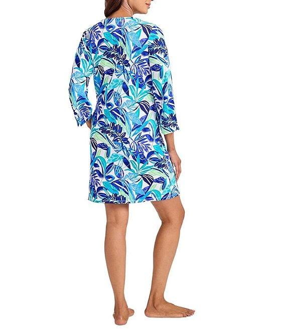 Tommy Bahama Island Cays Marina Split V-Neck 3/4 Sleeves Tunic Swim Cover-Up Dress