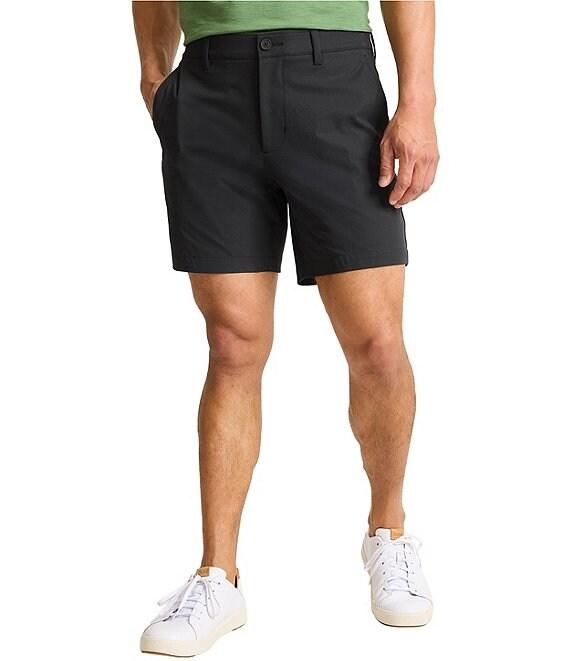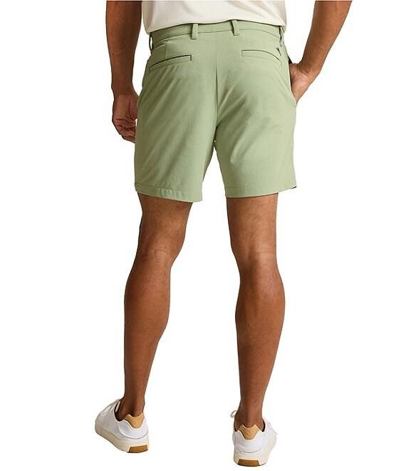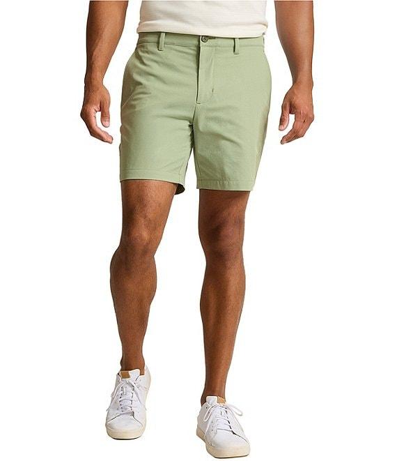 From Tommy Bahama, these shorts feature: Classic fit Flat front Belt loops Zip fly with button closure Quarter top side front pockets Double-layer welt back pockets 7" inseam Moisture-wicking UPF 30 Stretch fabric Recycled polyester/spandex/recycled nylon Machine wash/tumble dry Imported.