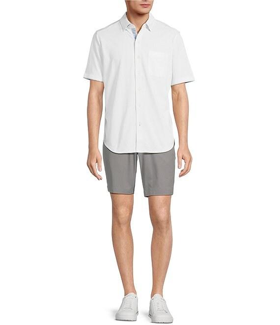 From Tommy Bahama, these shorts feature: Flat front Quarter-top front pockets Double-layer welt back pockets 9" Inseam Moisture-wicking Stretch fabric Piece-dye polyester/recycled polyester Machine wash/tumble dry Imported.