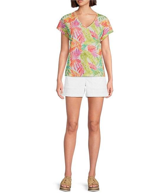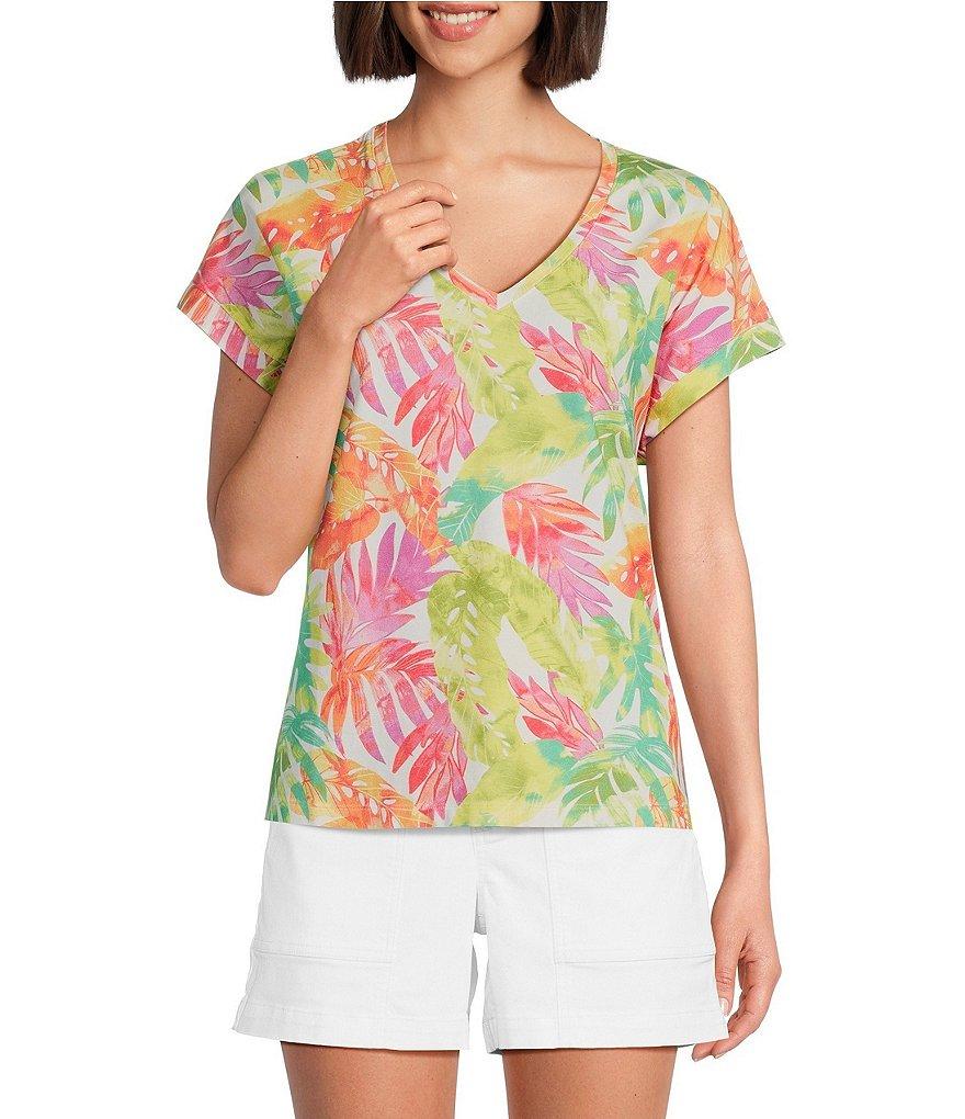 Tommy Bahama Kauai Tropicana Isle Printed V-Neck Cap Sleeve Stretch Jersey Knit Tee