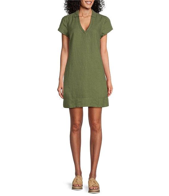 Tommy Bahama Linen Blend Johnny Collar Short Sleeve Side Pocket Shirt Dress