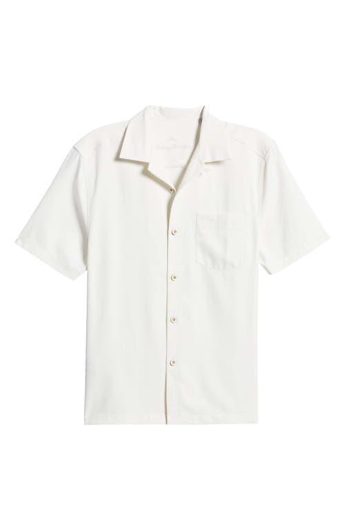 Your cool confidence has finally met its perfect match in this tropical-inspired camp shirt by Tommy Bahama. Woven with an airy silk blend comprised of eco-friendly, sustainable polyester for a soft-as-silk feeling without the care restrictions, its breezy and breathable for all-day comfort. 70% silk/30% COOLMAX Eco Made polyester. Spread collar. Jacquard check with pickstitched details. Slightly curved pocket with marlin embroidery. Short sleeves. Straight hem. Machine wash; imported.
