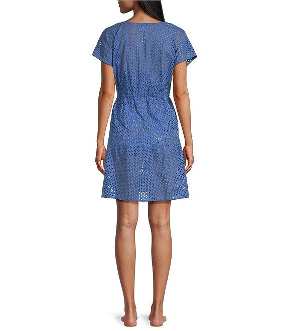 Tommy Bahama Organic Cotton Eyelet Cove V-Neck Swim Cover-Up Dress
