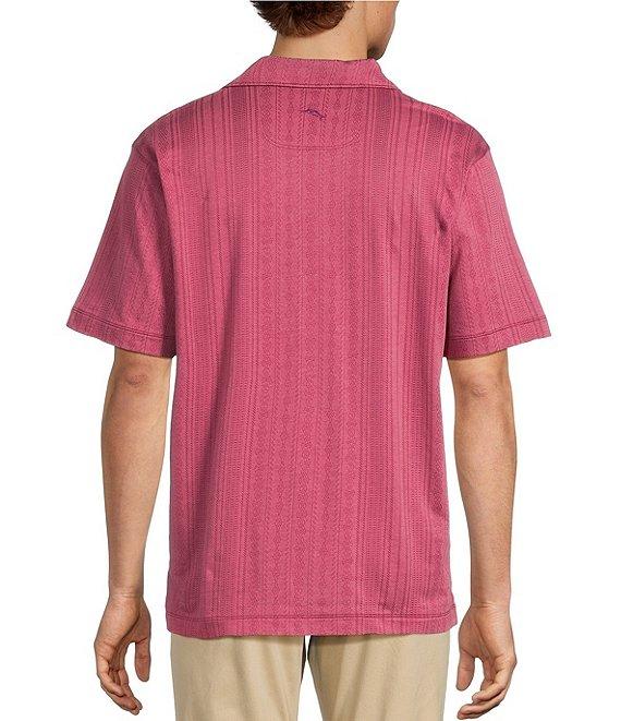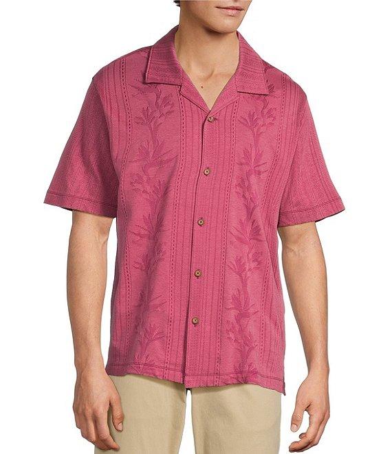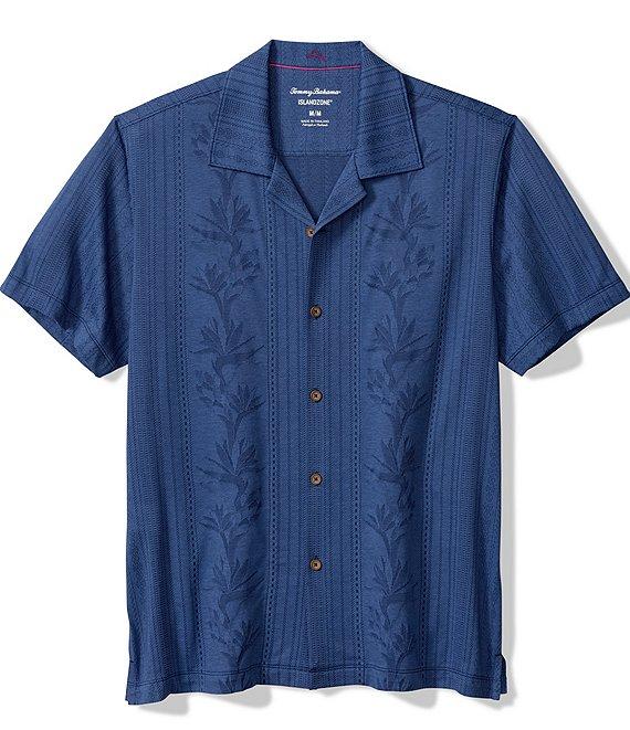 From Tommy Bahama Big & Tall, this shirt features: Engineered tonal jacquard print Camp collar Short sleeves Button-front closure Straight hem Piping details "Marlin" embroidery on the back neck Quick dry Moisture wicking Cotton/recycled polyester Machine wash/tumble dry Imported.
