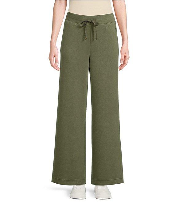 From Tommy Bahama, these pants feature: Knit fabrication Wide-leg silhouette 4-way stretch Half-elastic waistband Drawstring at the waist Pull-on construction Ankle length Approx. 28" length Recycled polyester/tencel™ modal/spandex Machine wash cold Imported.