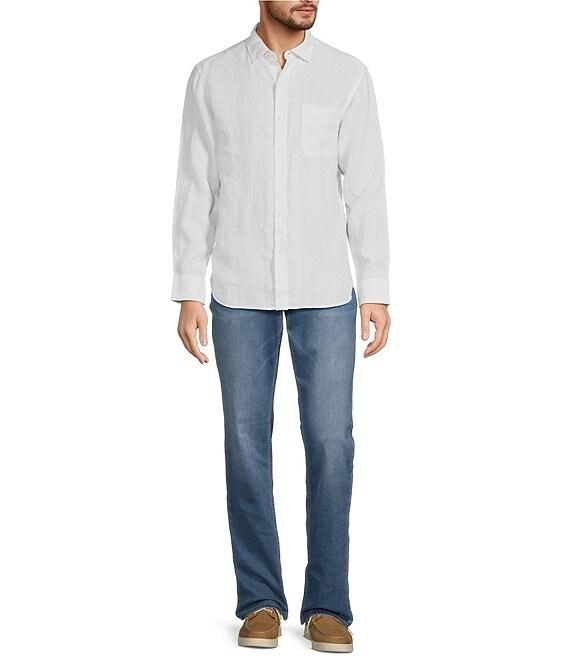 From Tommy Bahama, this shirt features: Plaid pattern Hidden button-down collar Long sleeves Left chest notched patch pocket Button-front closure Shirttail hem Side seam gussets Yarn-dyed linen Machine wash Imported.
