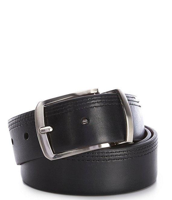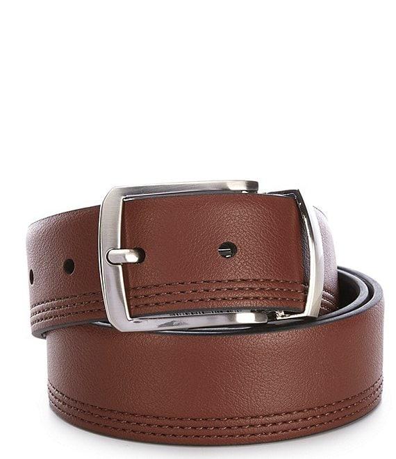 From Tommy Bahama, this belt features: reversible construction standard buckle with single keeper 4.0-4.4mm thickness 45" length 0.5" height 1.5" width S = 30-32 M = 34-36 L = 38-34 XL = 42-44 2XL = 46-48 polyurethane/bonded filler/split filler. Spot clean Imported. Suggested belt size: Take your existing pants size and add two inches. E.g. if your pants size is 32, purchase a size 34.