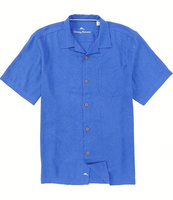 From Tommy Bahama, this shirt features:Jacquard solid tone fabricCamp collarShort sleevesButton front closureRound pocket on the left side of chestStraight hemSilk Machine wash/tumble dryImported.