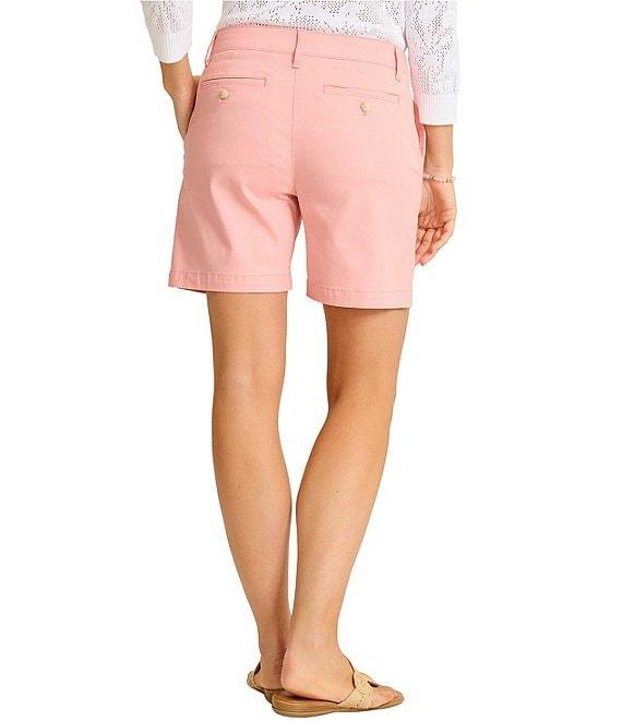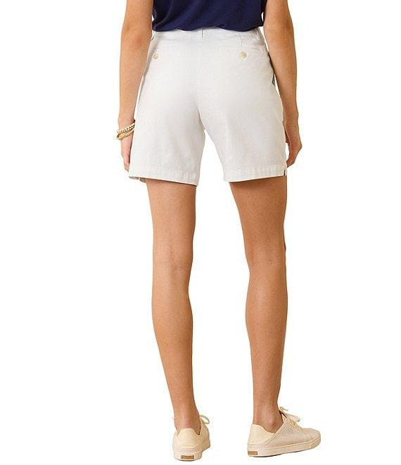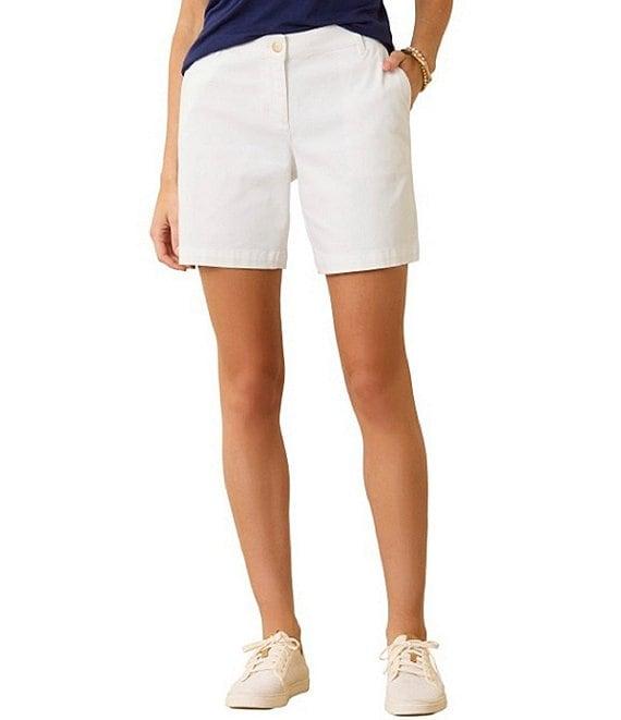 From Tommy Bahama, these shorts feature:Stretch boracay fabricationFlat front silhouette Mid rise Front slash pockets Back besom pocketsRelaxed fit Button front closure Approx. 7" inseamCotton/tencel/lyocell/spandexMachine wash/tumble dry Imported