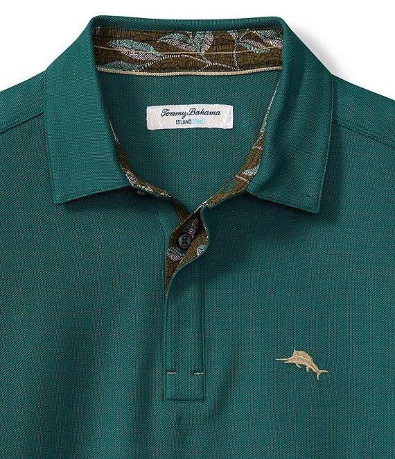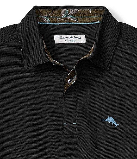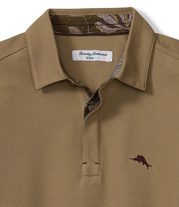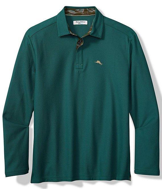 From Tommy Bahama, this polo shirt features: Polo collar Long sleeves 2-button placket Accented "marlin" logo on the left side of chest Printed woven trims Pullover construction UPF 30 Quick dry Moisture-wicking Supima cotton/recycled polyester Machine wash/tumble dry Imported.