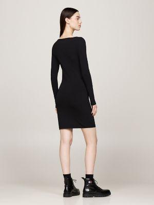 Tommy Hilfiger women's dress. Sport a retro aesthetic in this figure-hugging dress, made from stretch cotton with a flattering scoop neckline and our metallic logo. Part of our Tommy Jeans collection.