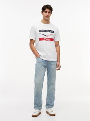 Tommy Hilfiger unisex T-shirt. Made from premium cotton with a soft feel, our chevron logo tee is super comfortable. Celebrating optimism and craftsmanship, discover a collection blending classic American cool with modern race-inspired details and the Cadillac F1® Team’s precision.