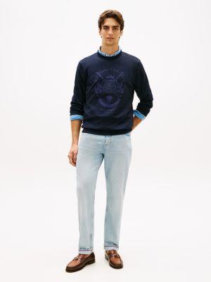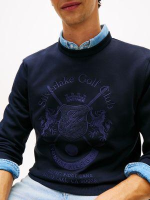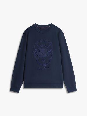 Tommy Hilfiger men's sweatshirt. Our intechno knit sweatshirt has a sleek, smooth and extra soft finish that keeps you warm without the bulk. A tonal embroidered design at the chest lends this crewneck an elevated feel.