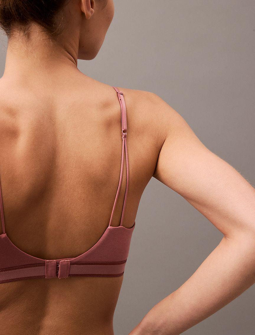 Remixed with a tonal design at our iconic logo band. Crafted from organic cotton blended with micro modal, this Calvin Klein lightly lined triangle bralette is a signature standout. Made with removable padding and a moisture wicking finish for lasting comfort.