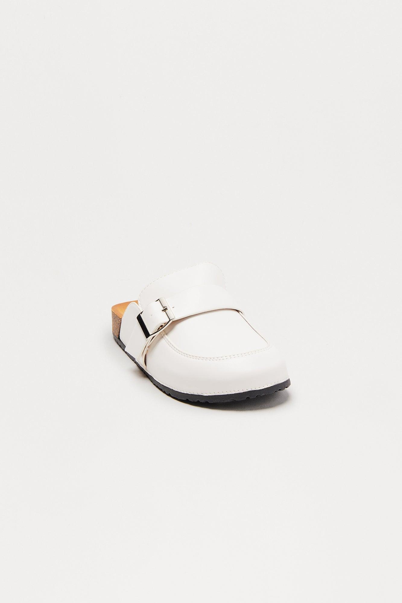 Tonya Faux Leather Buckle Flats - White Female