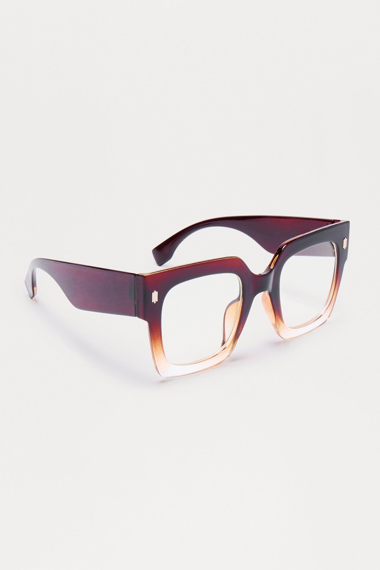 Available In Brown. Square Sunglasses Clear Lens Colorblock Frame Plastic Imported California Proposition 65WARNING: Cancer and Reproductive Harm - www.P65Warnings.ca.gov.