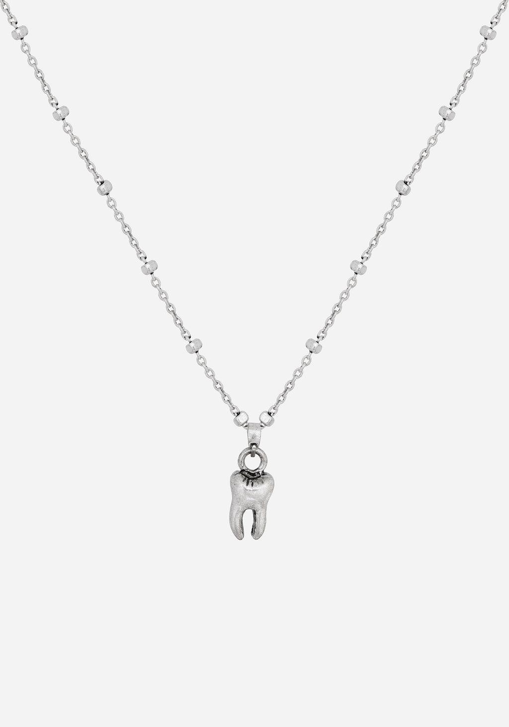 Silver Tooth Pendant Necklace Silver Plated Lobster Clasp 42cm + 8cm 40% Brass, 60% Zinc