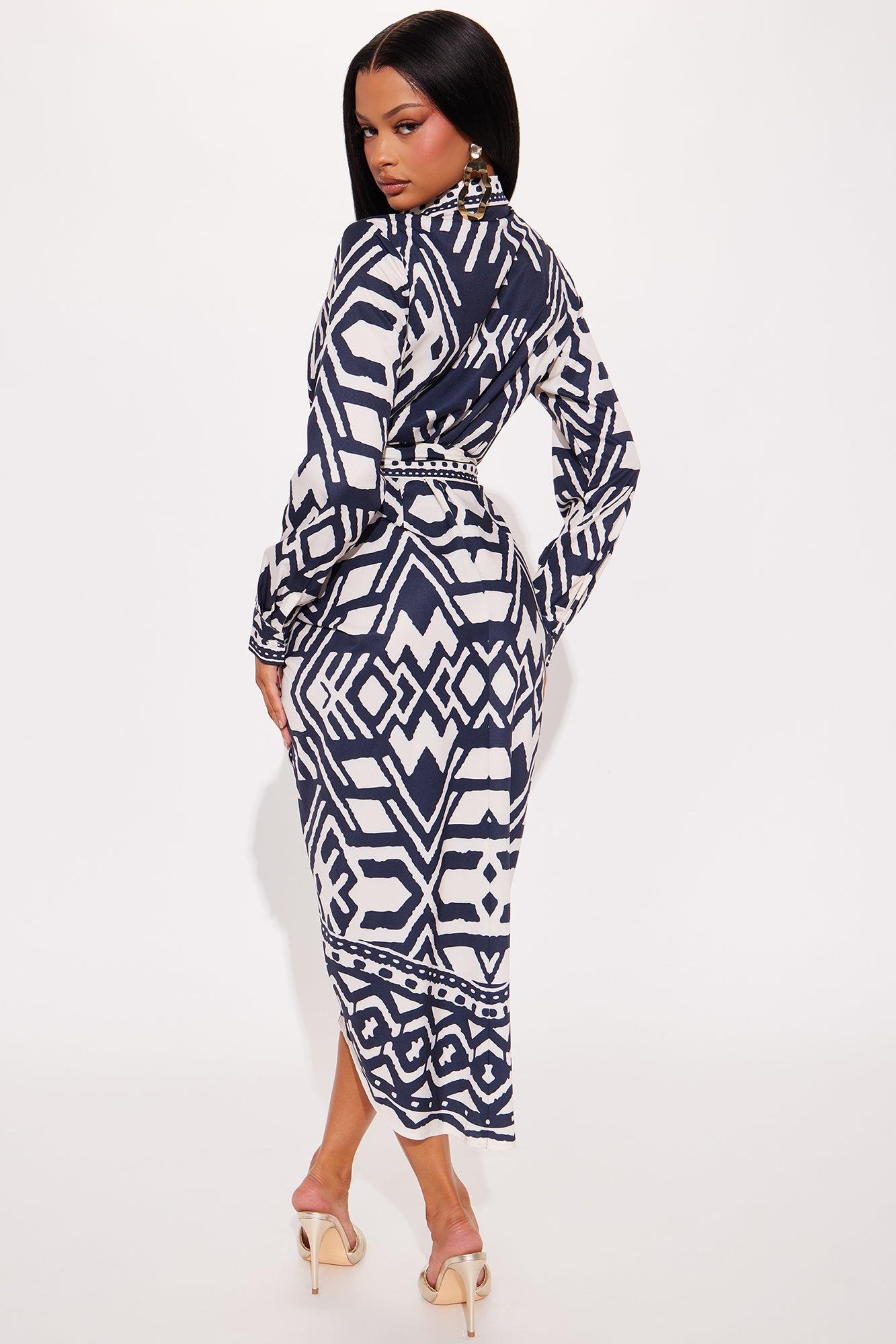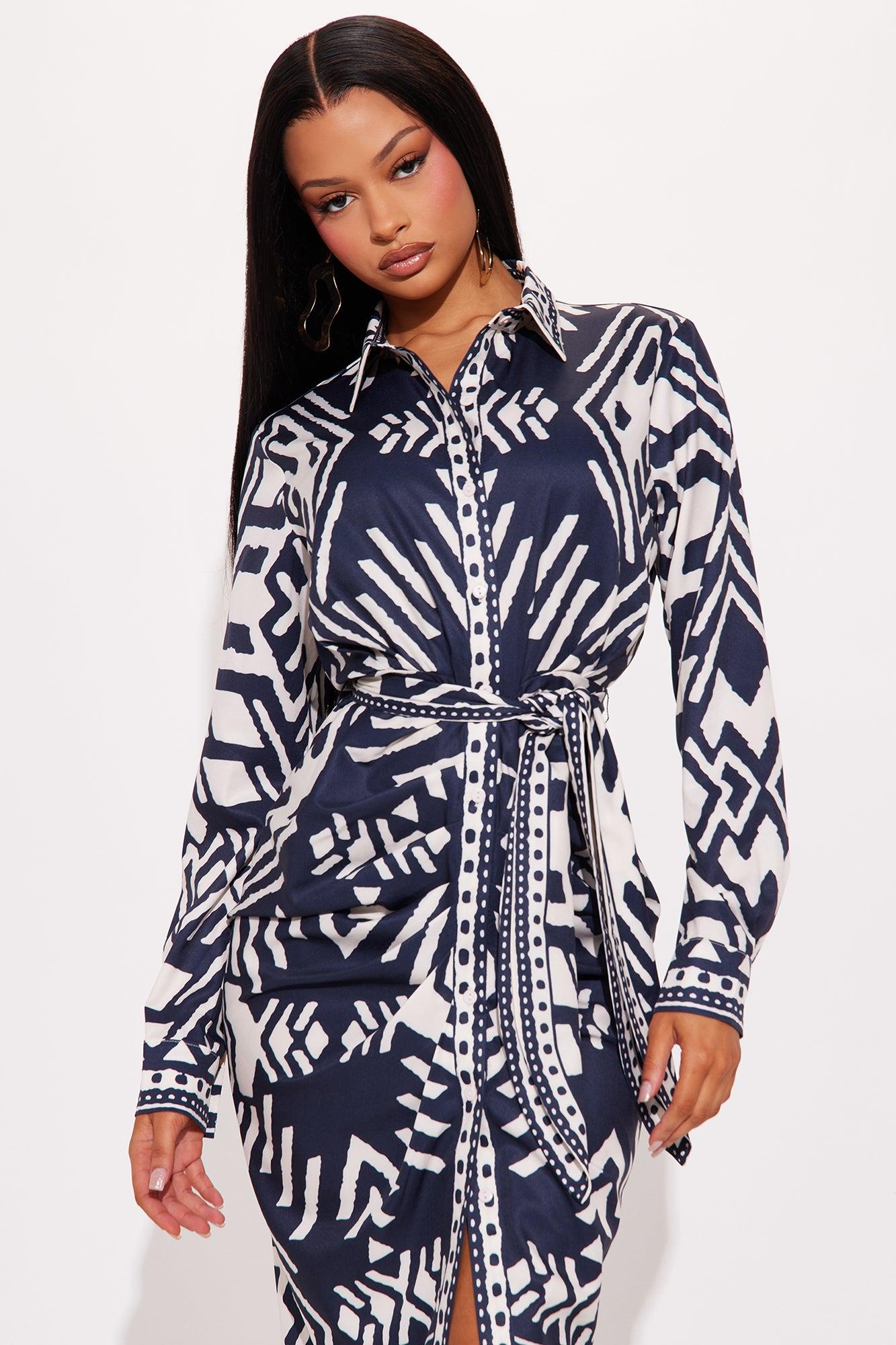 Top Destination Satin Shirt Midi Dress - Navy
