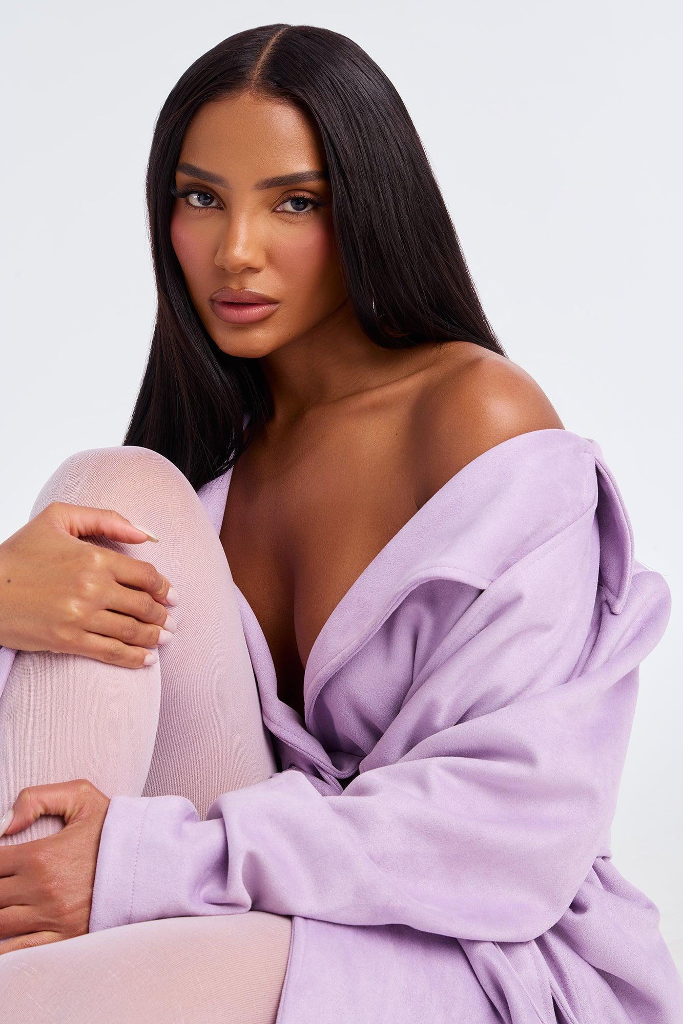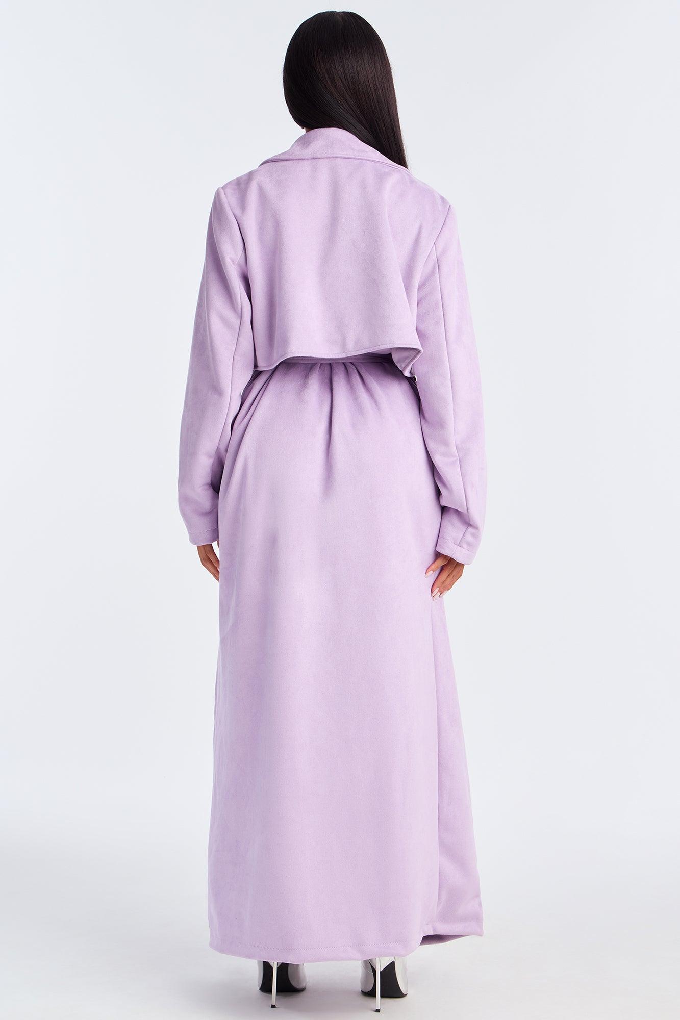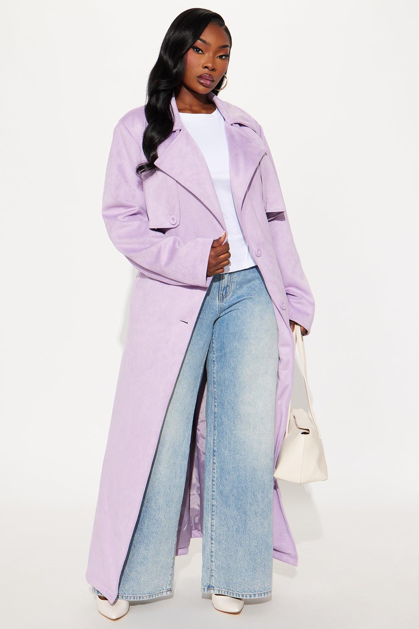Topic of Conversation Faux Suede Trench Coat - Lavender Female
