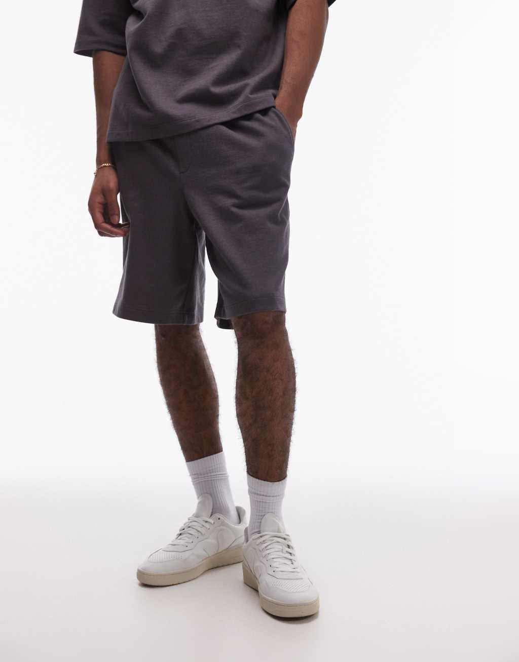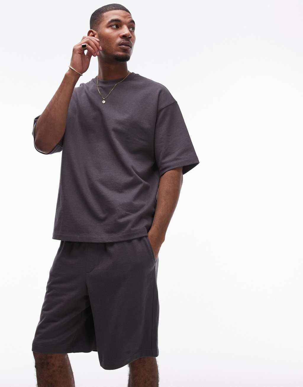 Topman oversized fit linen blend short sleeve sweatshirt in charcoal