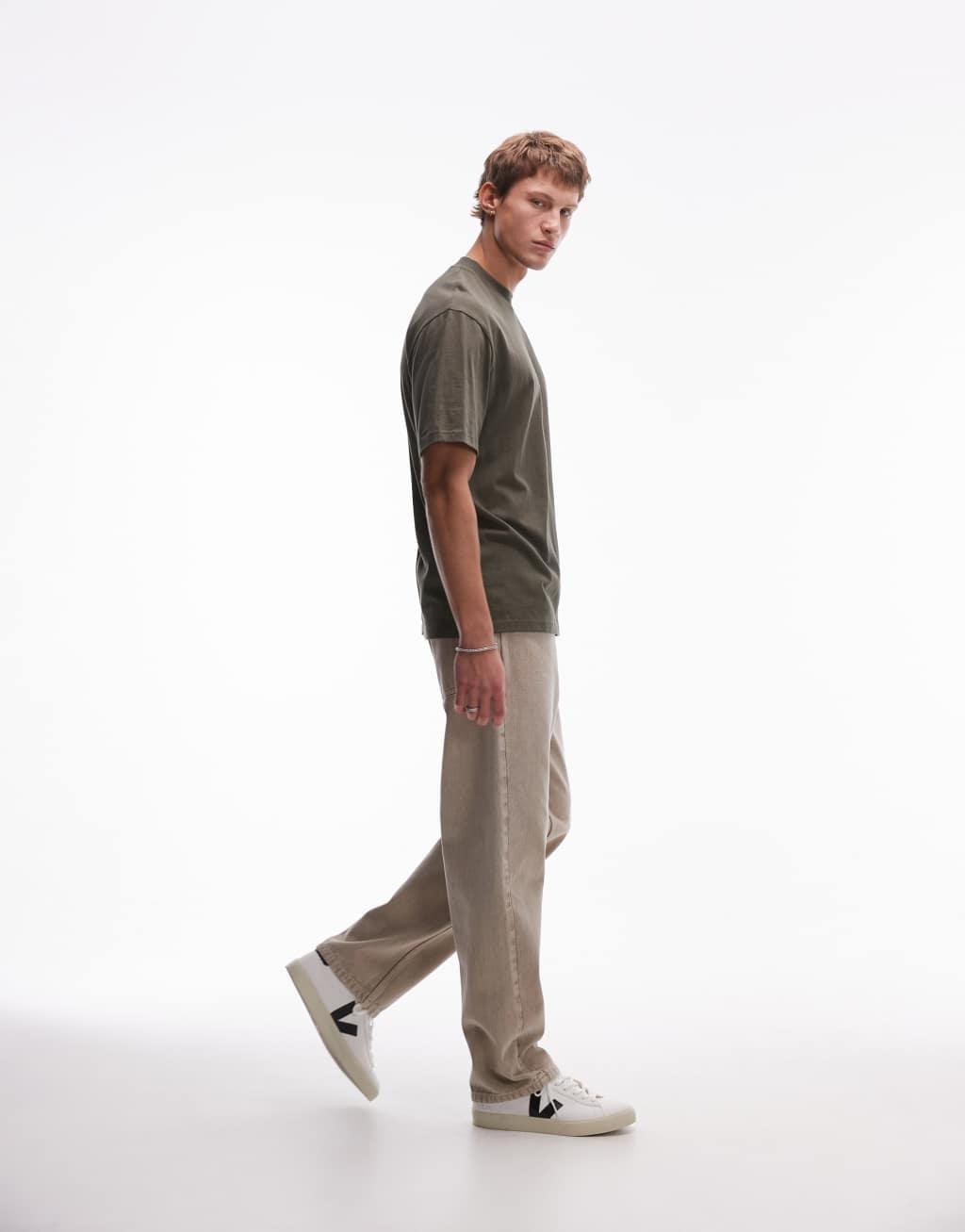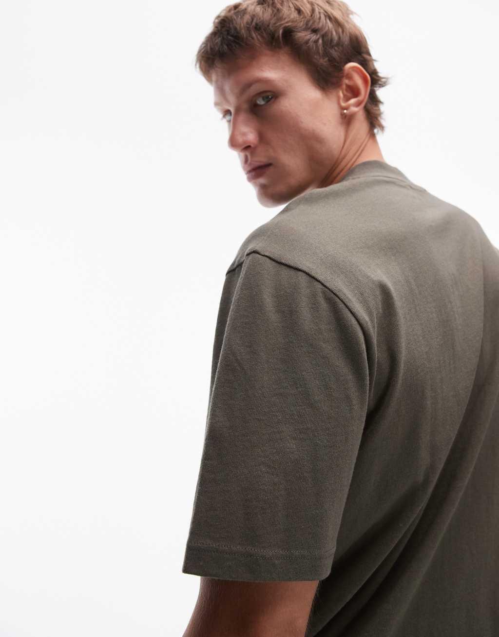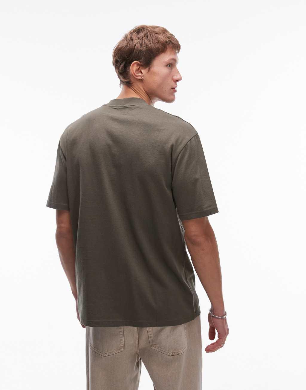 ASOS DESIGN boxy oversized T-shirt with back print in khaki