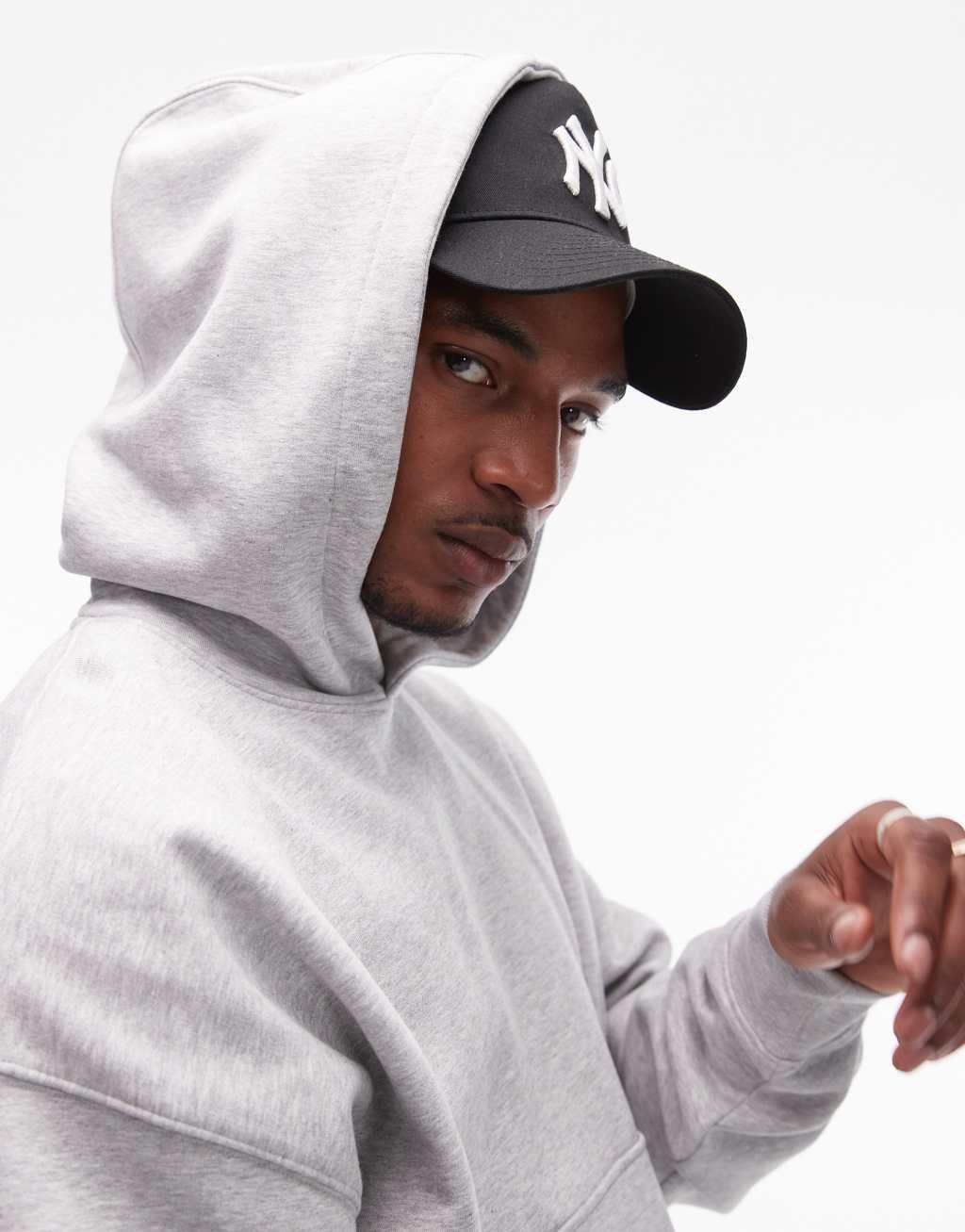 Topman premium heavyweight oversized hoodie in gray heather