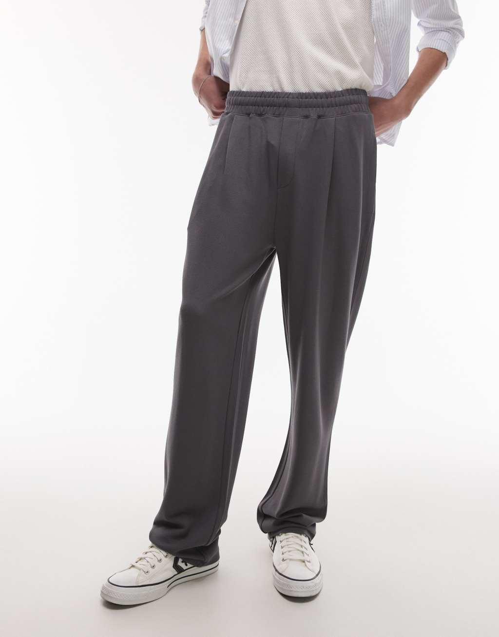 Topman premium straight fit twill sweatpants in charcoal