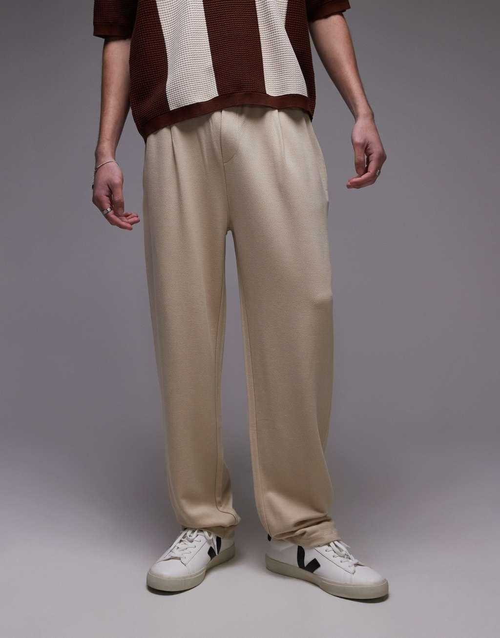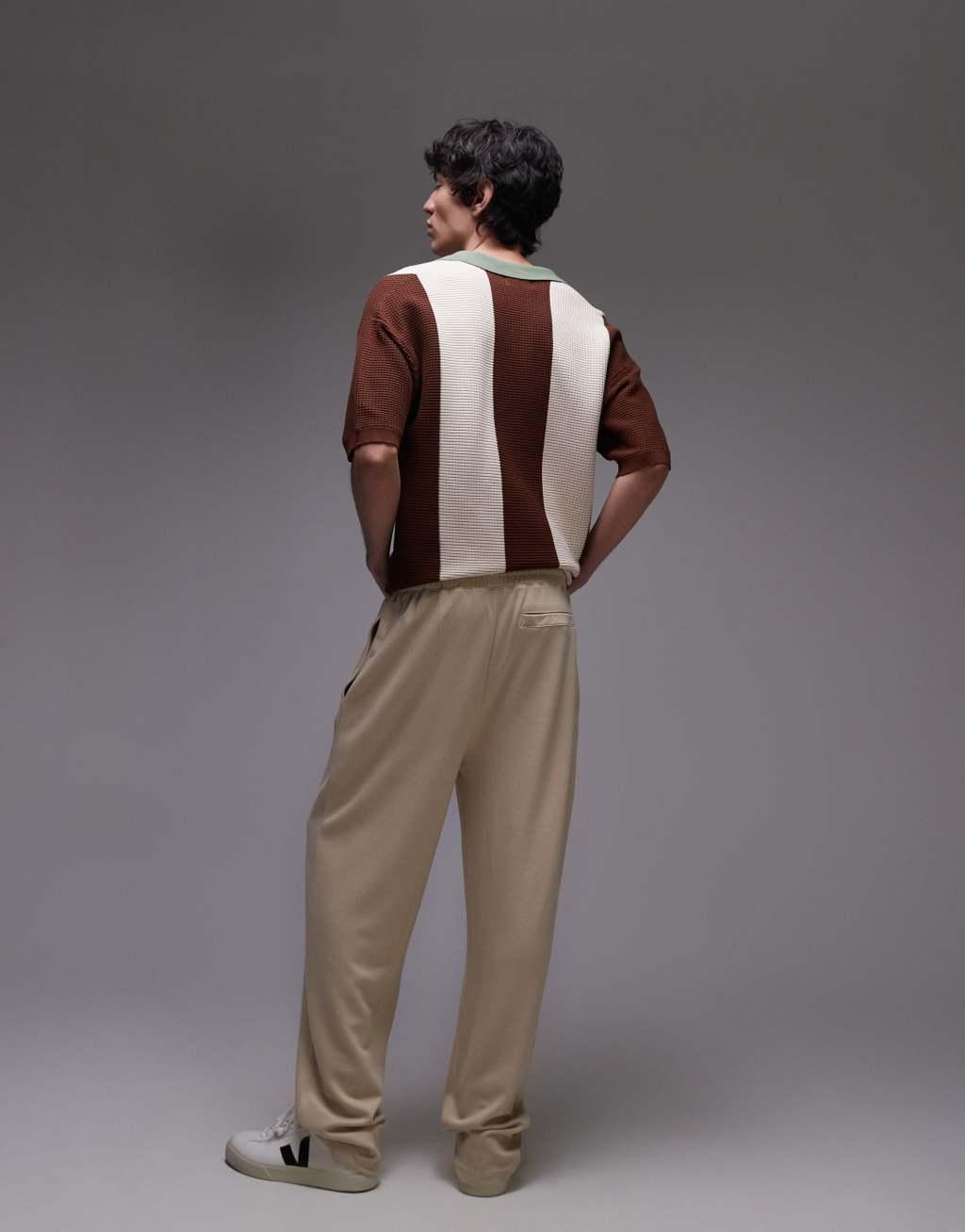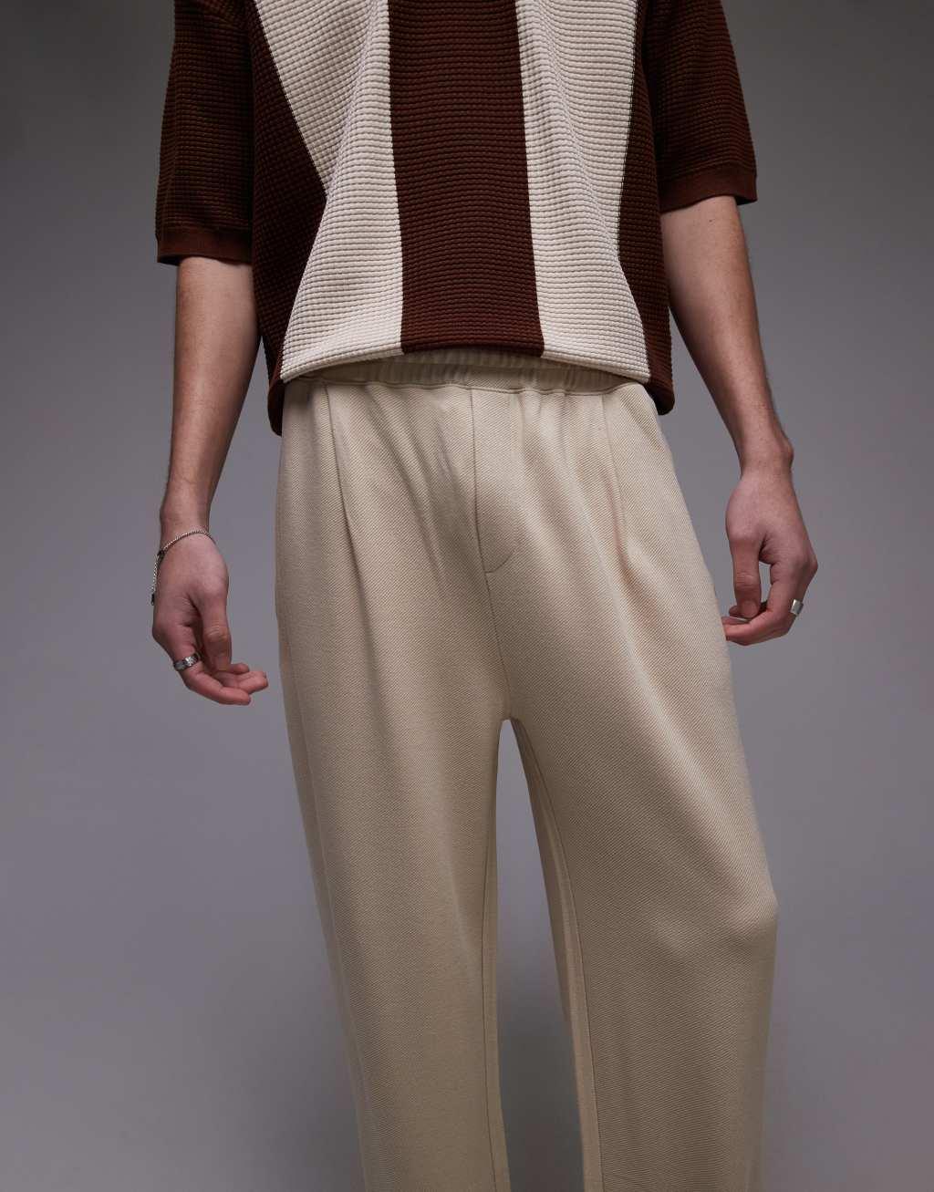 Topman premium straight leg twill sweatpants in stone