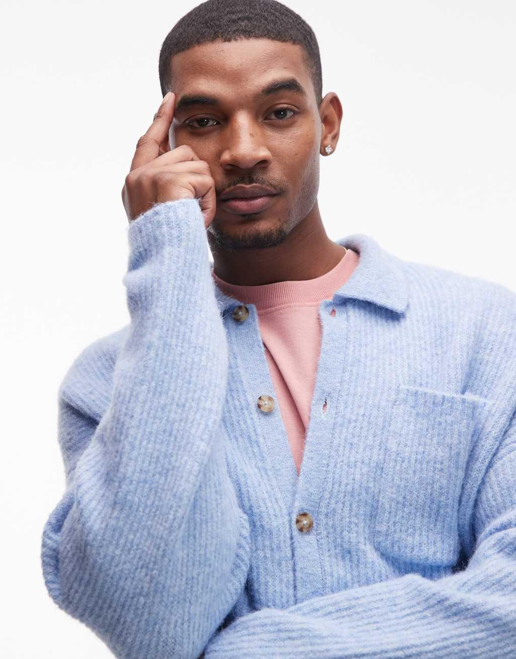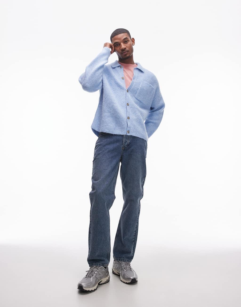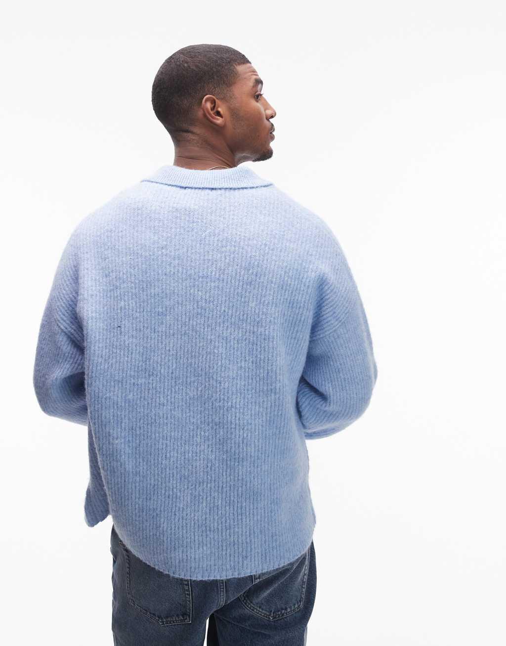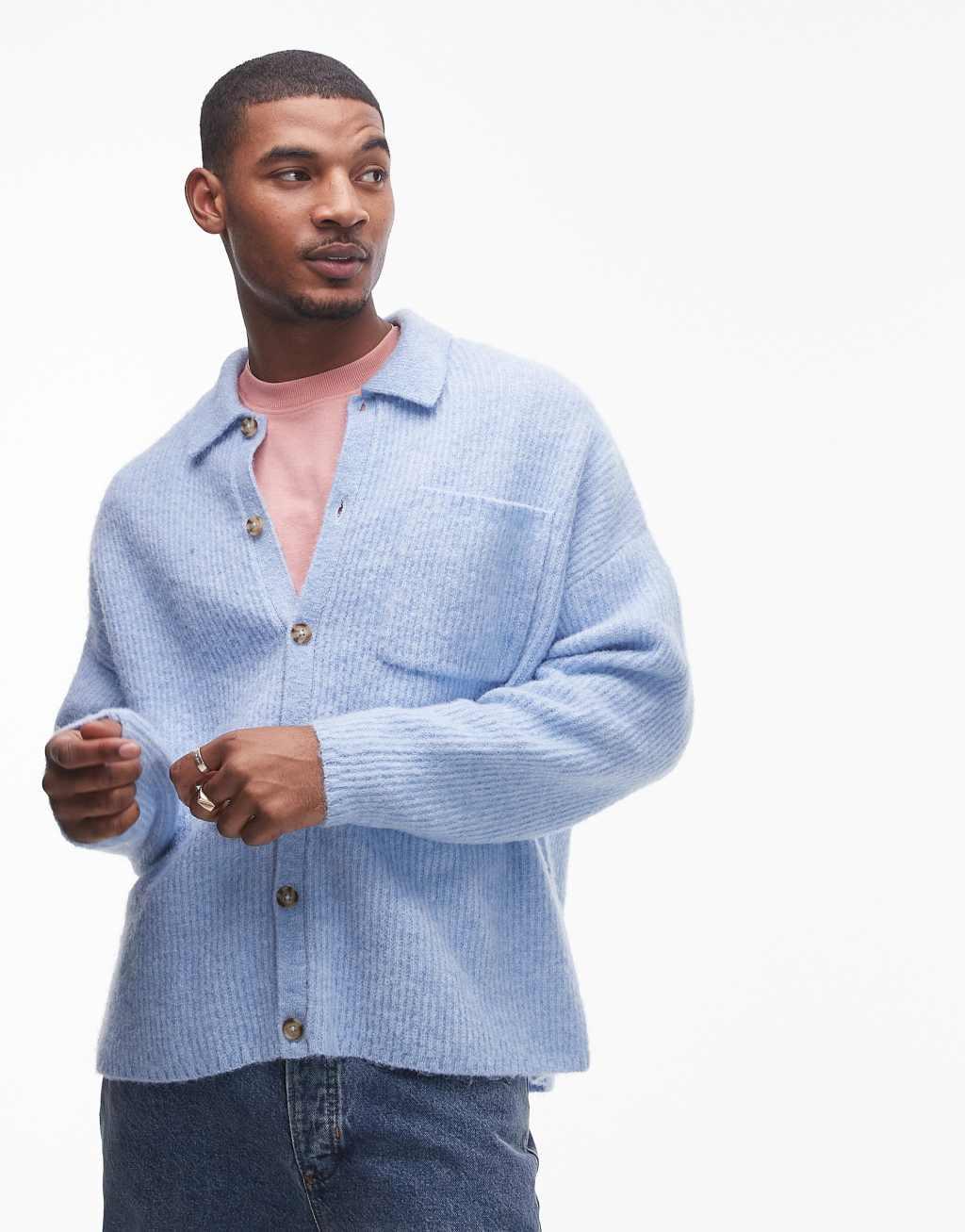 Topman relaxed fit brushed collared cardigan in light blue