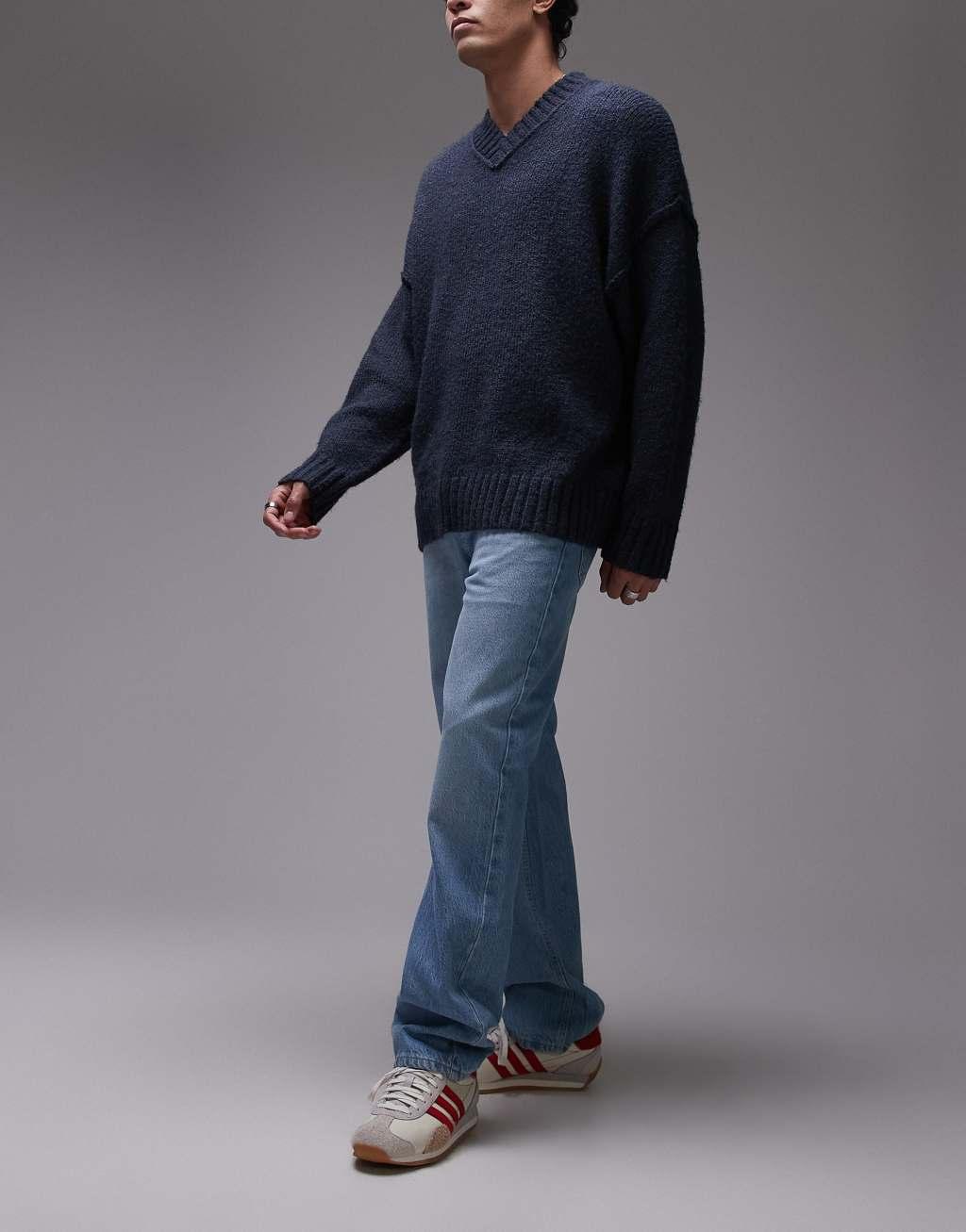 Topman rigid straight jeans in light wash blue