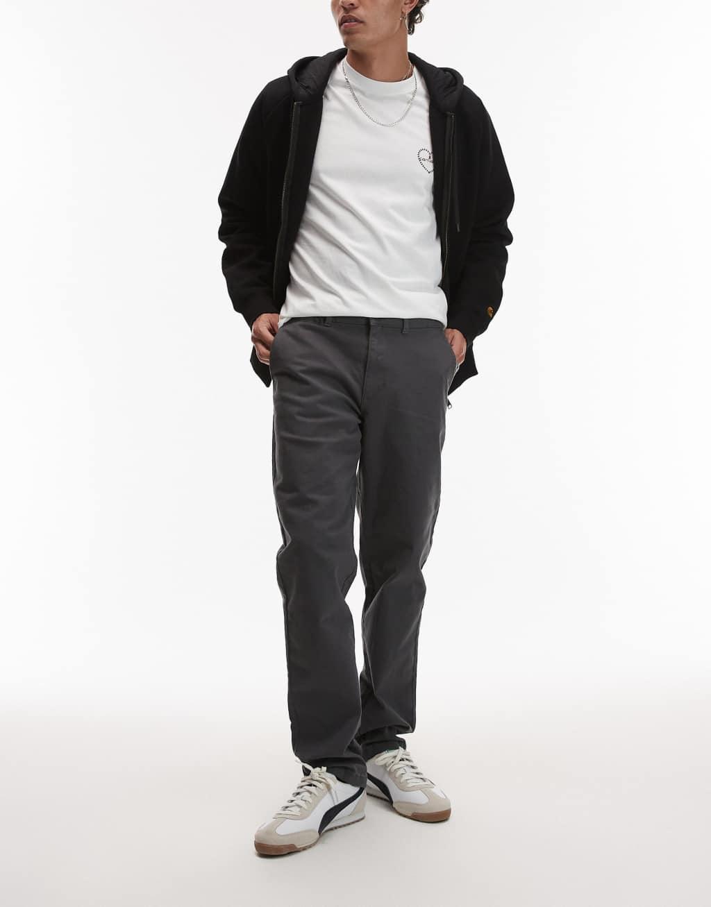 ASOS DESIGN smart tapered cotton chino pants in charcoal
