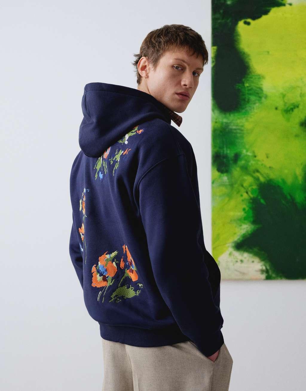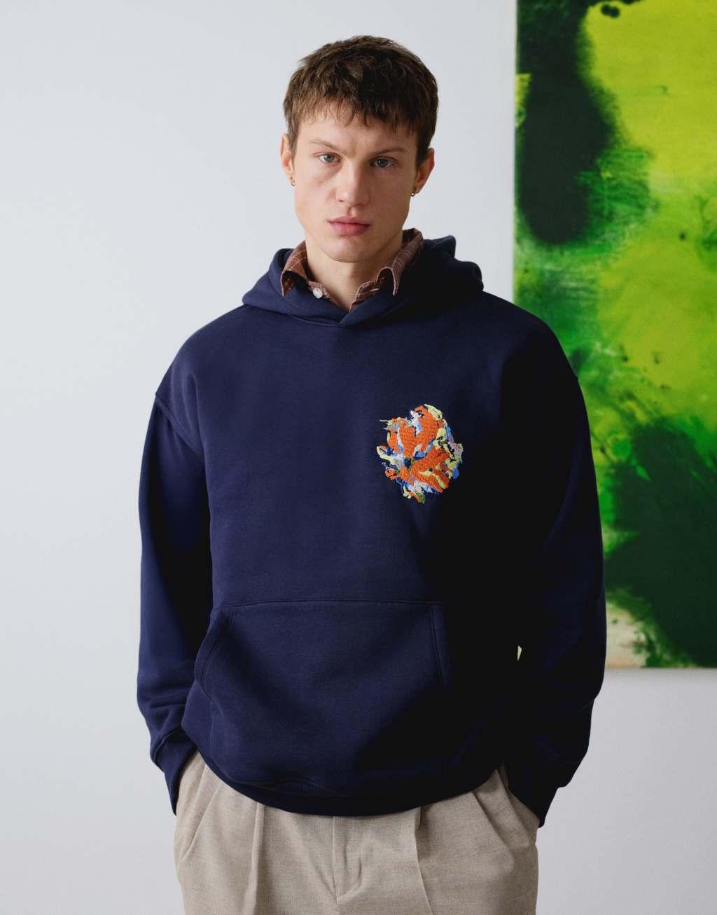 Topman x Alice Hartley oversized fit hoodie with front and back floral embroidery in navy