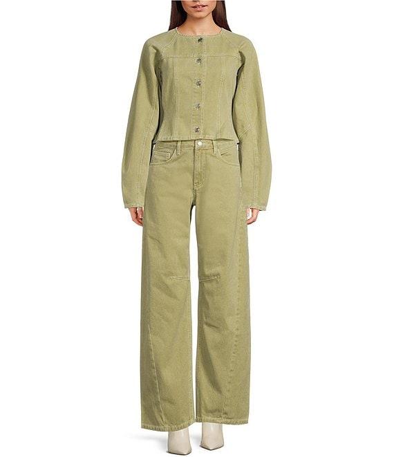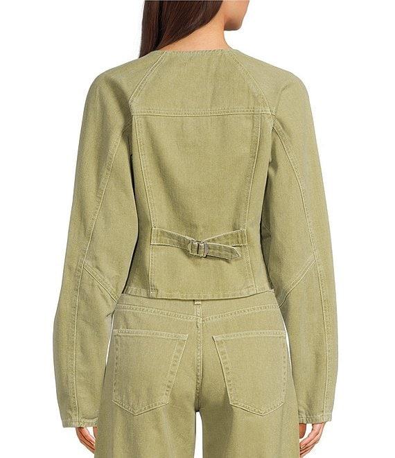 TOPSHOP Cinch Long Sleeve Button Front Coordinating Denim Top