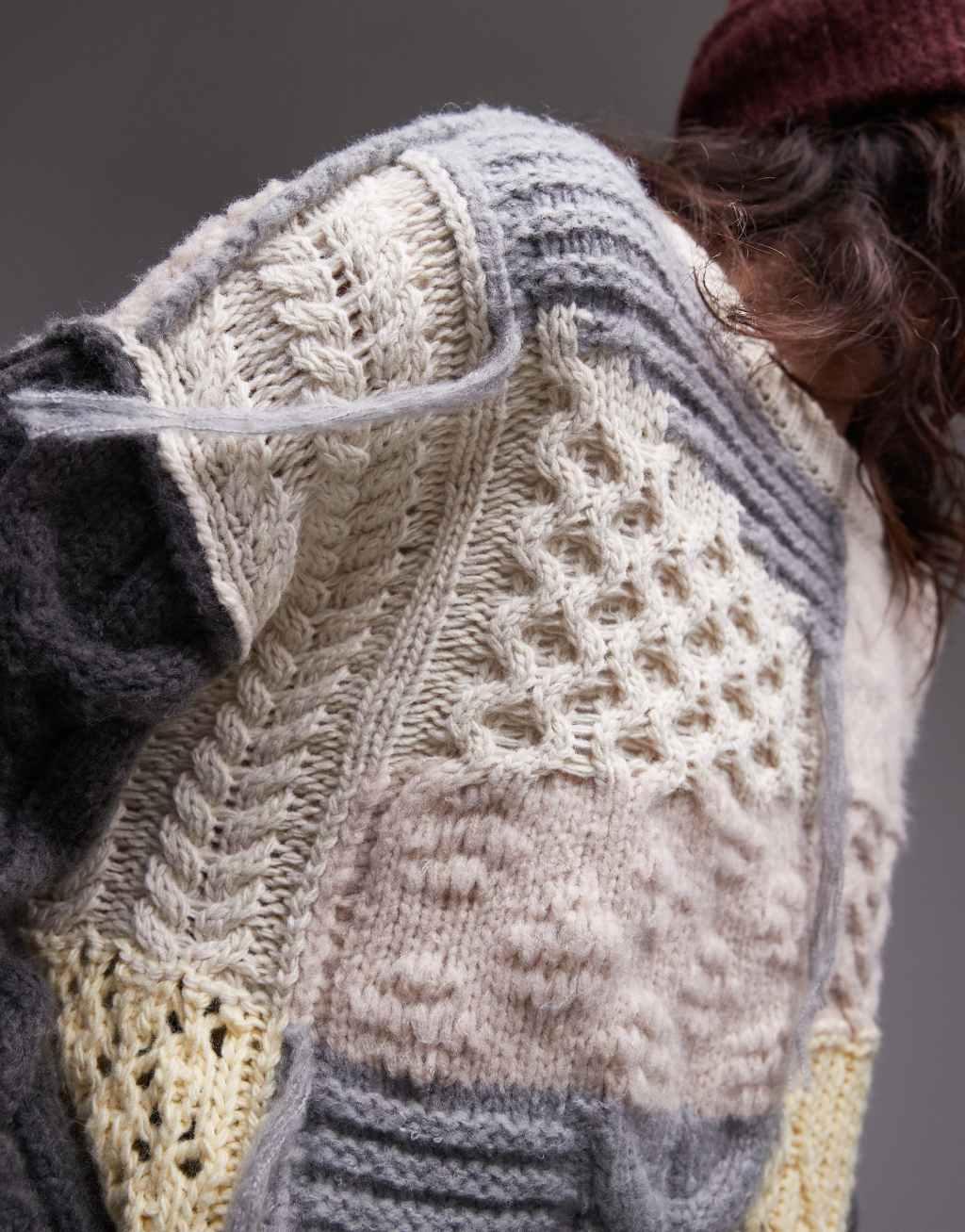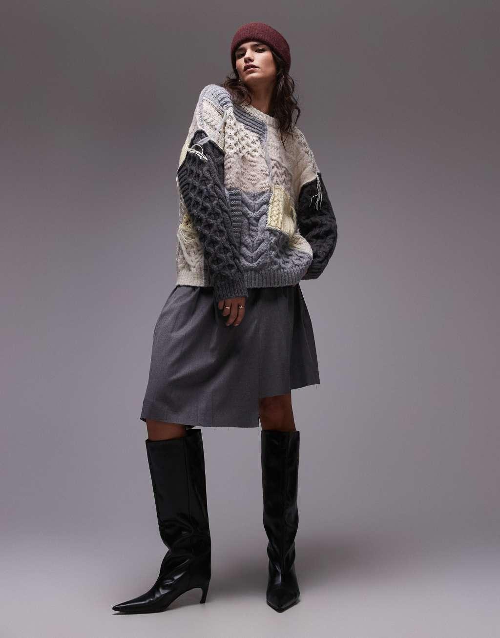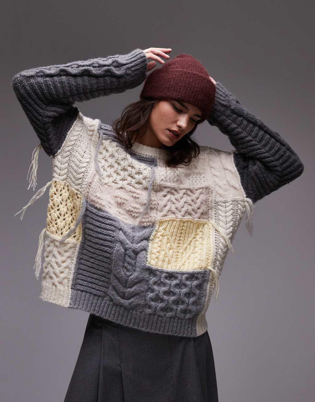 Topshop knit chunky oversized patchwork sweater in multi