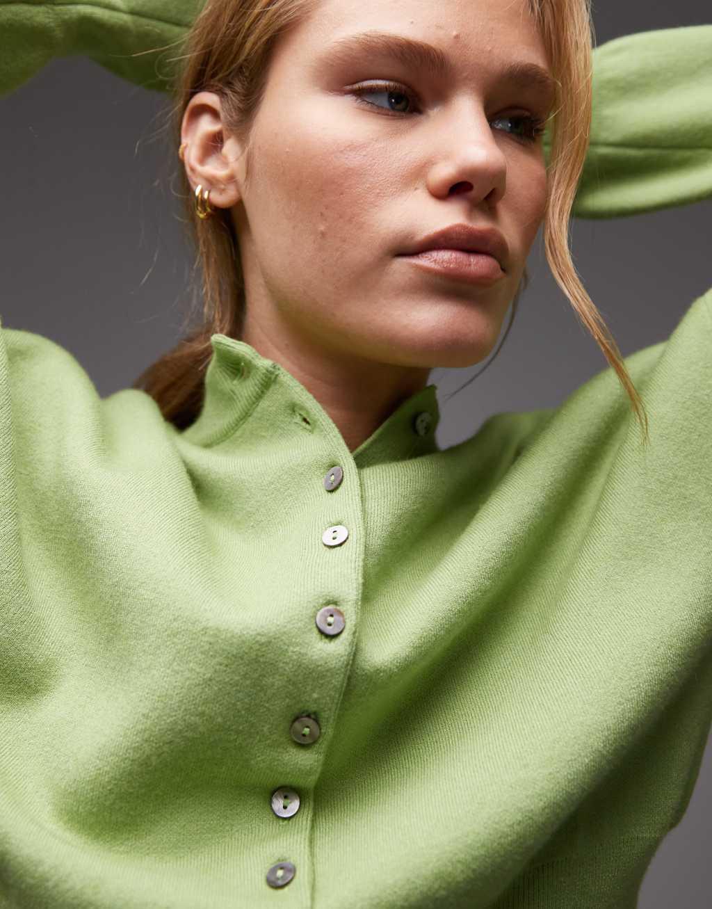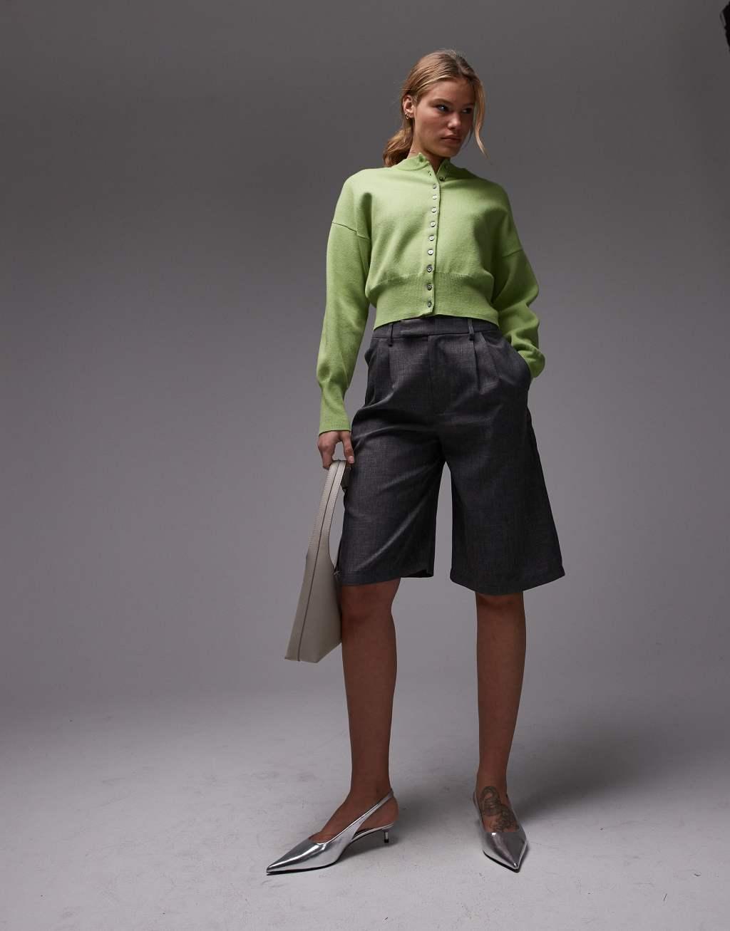 Topshop knit compact fitted waist cardigan in green