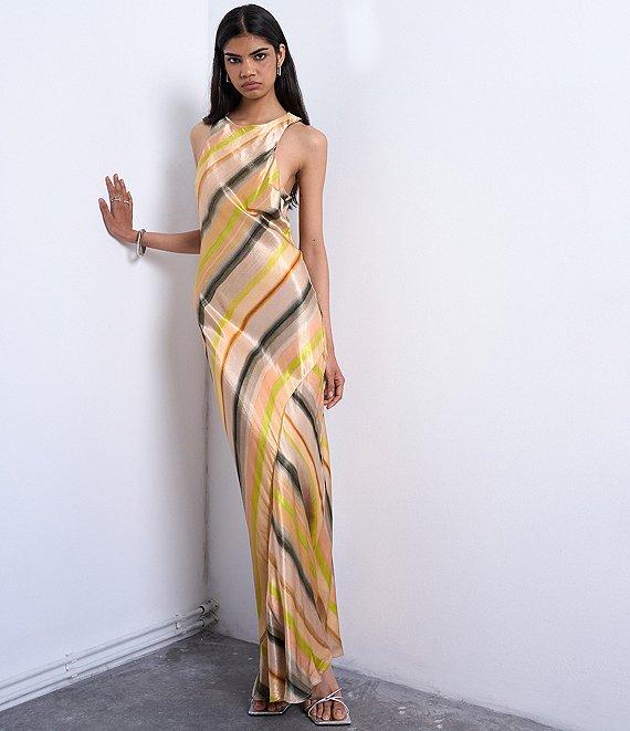 TOPSHOP Satin Stripe High Neck Sleeveless Maxi Dress