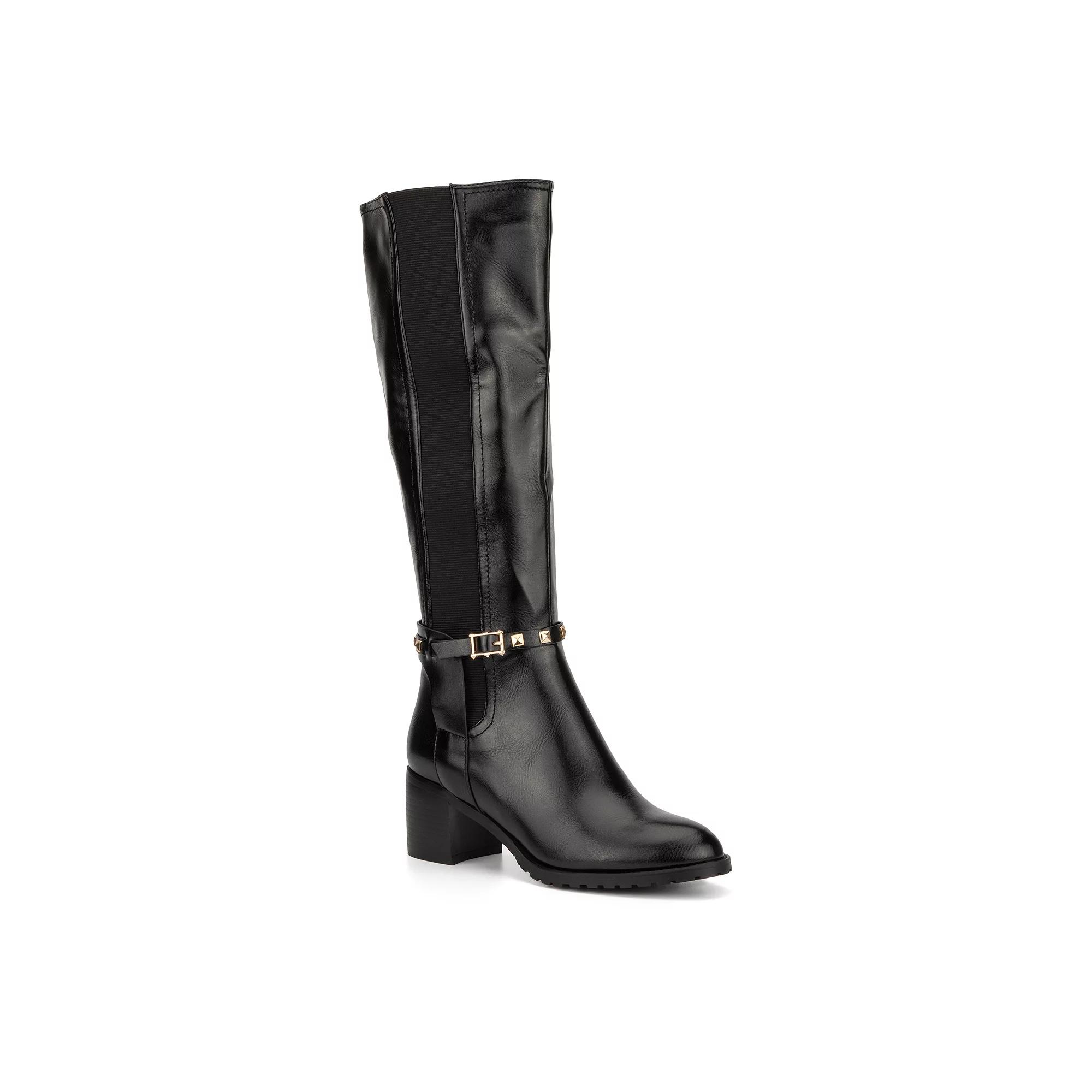 Closure Type: ZipperShaft Circumference: 13 1/2 InchesBoot Shaft Height: 13 1/2 InchesShoe Heel Height: 2 1/2 InchesUpper/Outer Base Material: 100% SyntheticShoe Lining Material: TextileSole Material Content: 100% RubberCalf Width: RegularToe Type: Plain Toe, Closed ToeHeel Style: Block HeelCountry of Origin: Imported