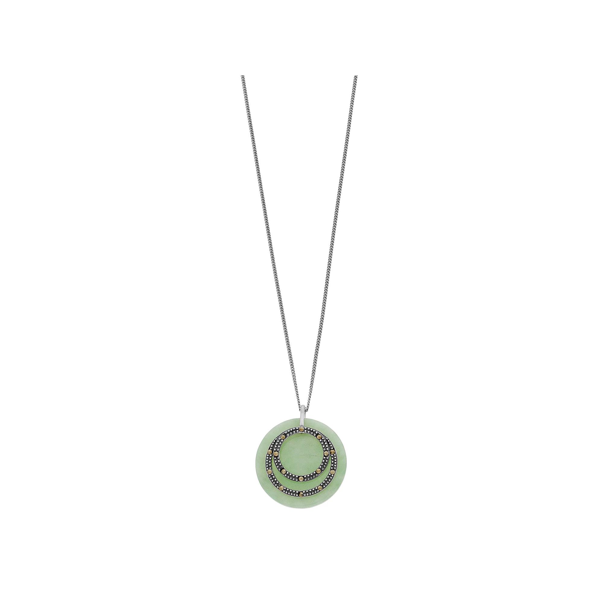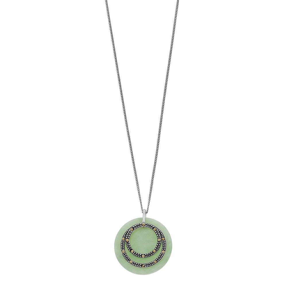 Accessorize your style with this beautiful marcasite and jade pendant necklace from Tori Hill. NECKLACE DETAILS Length: 18-in. Chain type: curb Clasp: spring-ring Metal: sterling silver Finish: antiqued Packaging: boxed GEMSTONE DETAILS Stone type: marcasite, jade Center stone size: 25mm Shape: round Color: gray, green Gemstones may have been treated to enhance their appearance. Special care may be required. Please visit our Gemstone Treatment & Special Care Guide for more information. Image(s) may be enlarged to show detail. Size: 18". Gender: female. Age Group: adult.