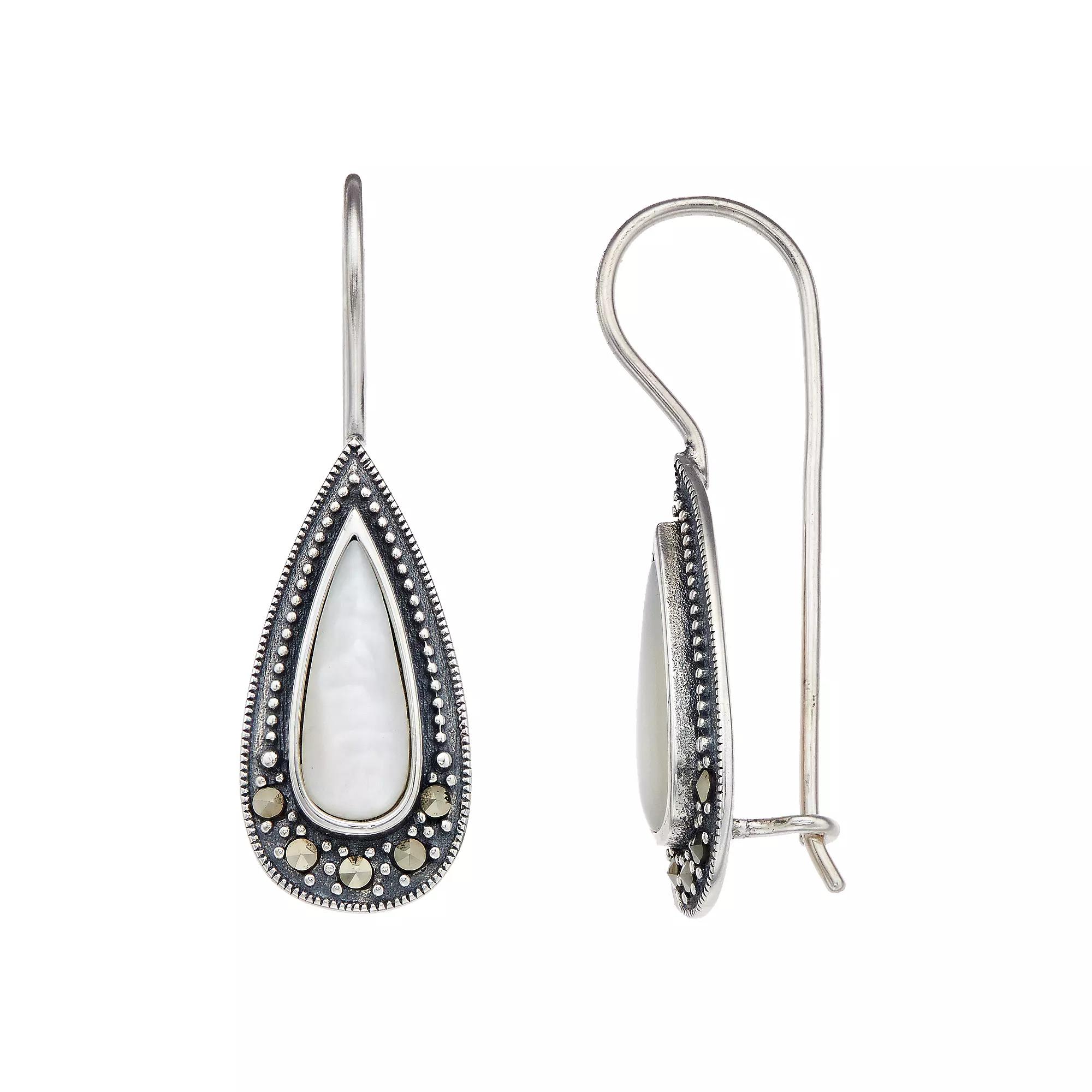 These long teardrop earrings from Tori Hill offer bold, eye-catching style. EARRING DETAILS Length: 1 3/8-in. Backings: Frenchwire Metal: sterling silver Finish: antiqued Packaging: boxed GEMSTONE DETAILS Stone type: marcasite Center stone size: 9mm x 5mm Shape: round Color: gray, white Gemstones may have been treated to enhance their appearance. Special care may be required. Please visit our Gemstone Treatment & Special Care Guide for more information. Image(s) may be enlarged to show detail. Gender: female. Age Group: adult.
