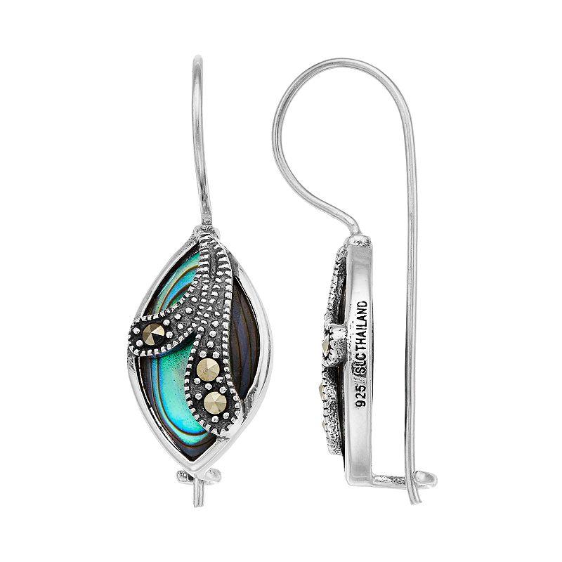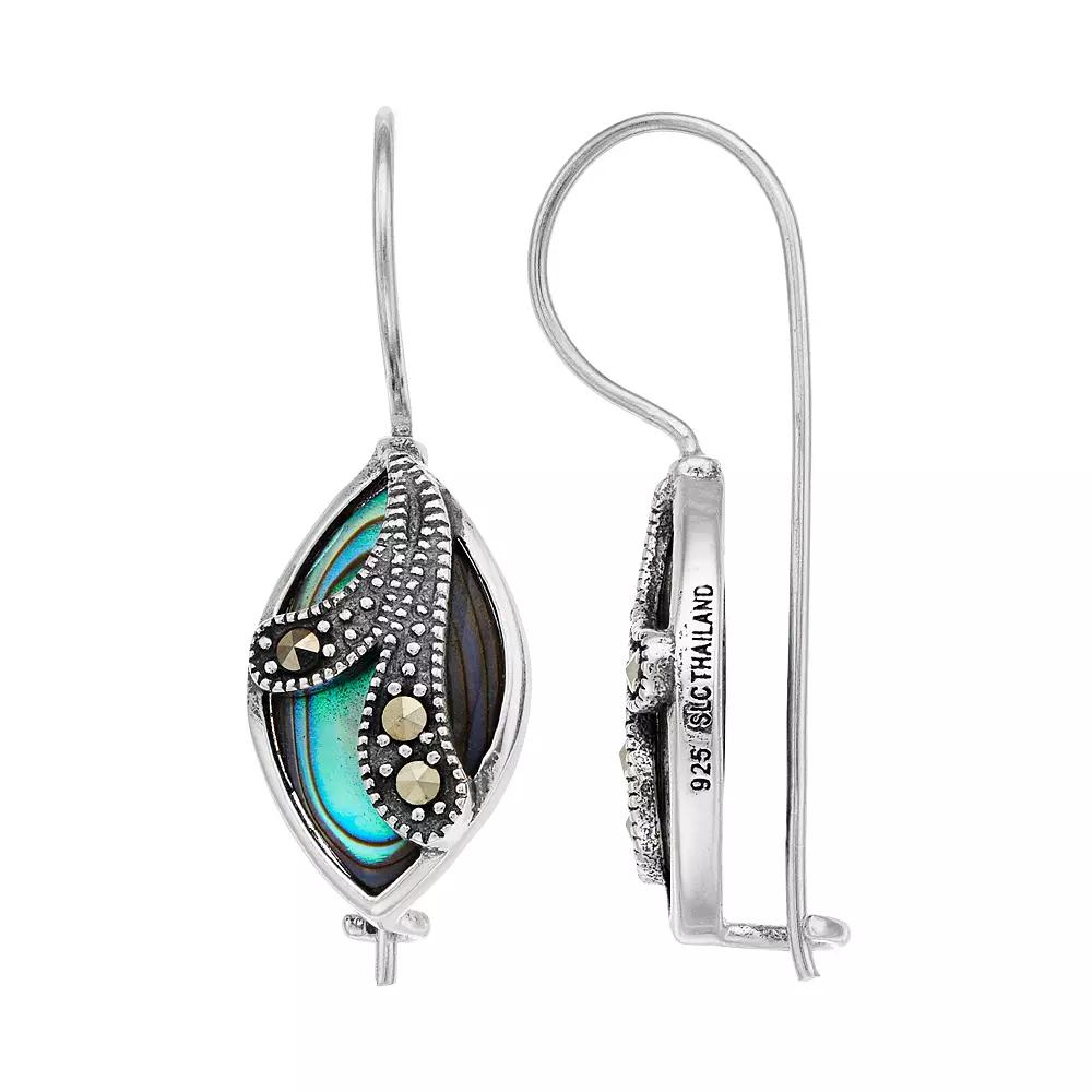 Make your look pop with the stunning style of these Tori Hill drop earrings. EARRING DETAILS Length: 1 in. Backings: Frenchwire Metal: sterling silver Finish: antiqued Packaging: boxed STONE DETAILS Stone type: abalone & marcasite Color: blue & gray Shape: marquise & round Gemstones may have been treated to enhance their appearance. Special care may be required. Please visit our Gemstone Treatment & Special Care Guide for more information. Size: One Size. Color: Green. Gender: female. Age Group: adult.