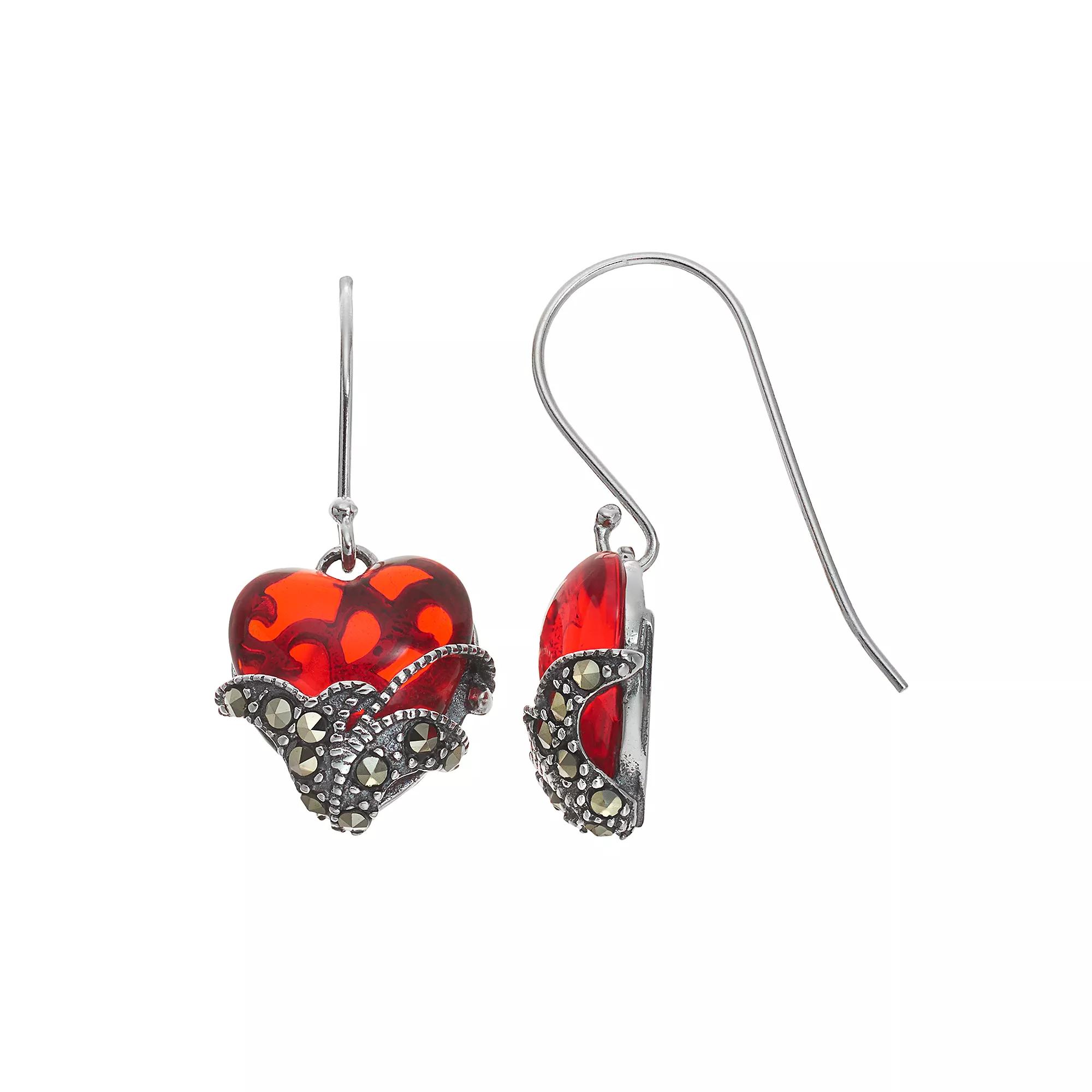Elevate your ensemble with the eye-catching beauty and style of these Tori Hill Sterling Silver Marcasaite & Red Glass Heart Drop Earrings. Click on this JEWELRY & WATCHES GUIDE to learn about fit, styles, materials and more! FEATURES Length: 12mm Backings: wire Nickel free Metal: sterling silver Finish: antiqued Packaging: boxedSTONE DETAILS Stone type: marcasite Size: One Size. Gender: female. Age Group: adult.